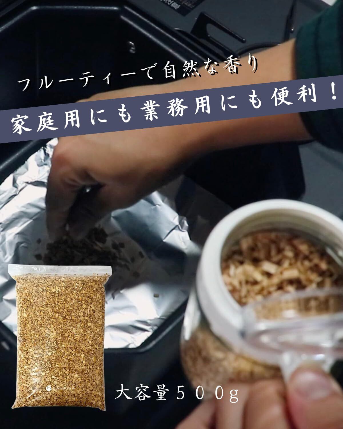■【業務用にも対応!】500gの大容量は、家庭用だけでなく、飲食店やバーベキューイベントなど、業務用としてもご利用いただけます。たくさんの食材を一気に燻製することができ、コストパフォーマンスにも優れています。大切な人々との食事をさらに特別なものにするツールです。