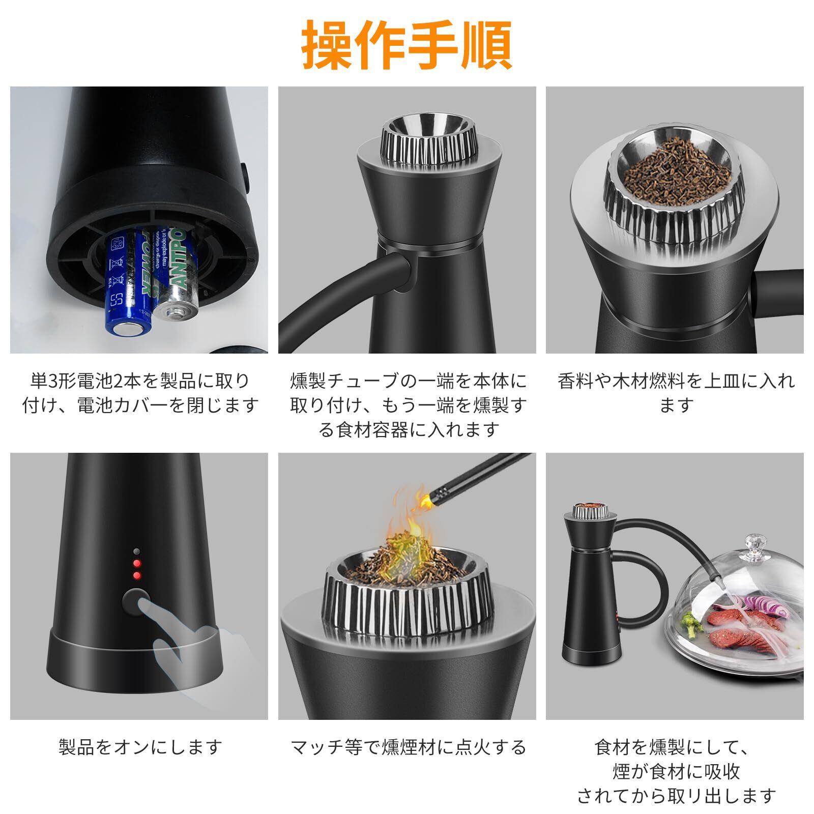 ■【軽量・小型設計で便利!】電池式のこのスモーキングガンは、軽量かつコンパクトな設計で持ち運びも簡単です。屋内でも屋外でも手軽に使用でき、様々なシーンにぴったりです。