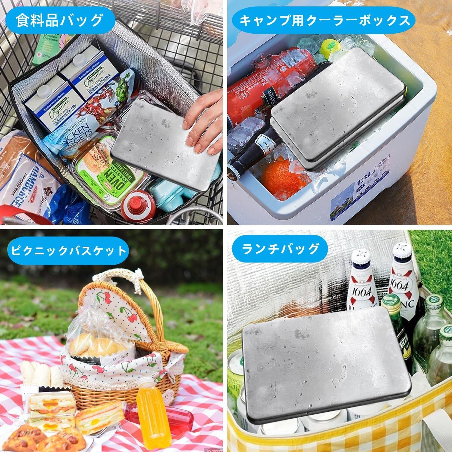【特価セール】ステンレス 保冷剤 アイスパック 長時間 長持ち コンパクト保冷剤倍速凍結&驚異の保冷力 【新改良型 限定版-倍速凍結】最高な冷却用品 繰り返し使える クーラーボックス アウトドア レジャー 薄型 お弁当 クール 長方形 ひんやり 多目的クーラーアクセサリー ハイキング キャンプ 釣り