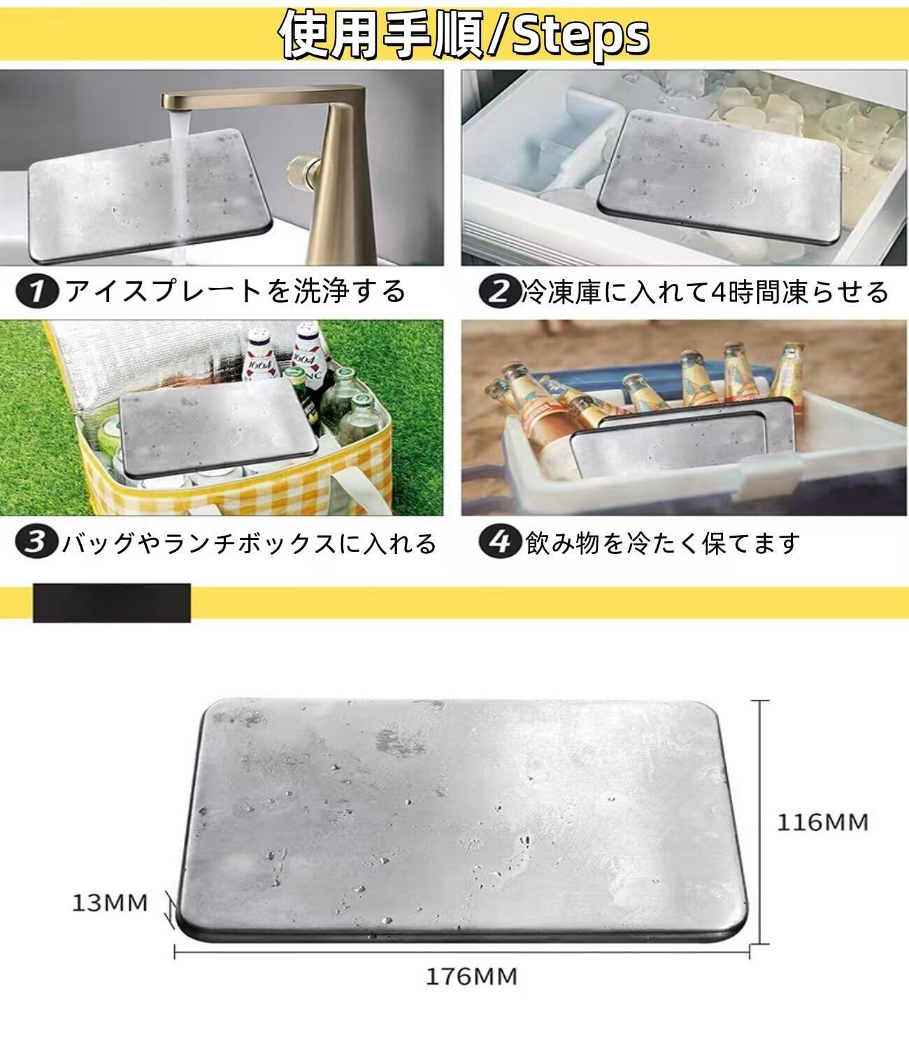 【食品グレードのステンレス素材】 高品質な食品用ステンレススチール製で、有害なBPAを含まず、プラスチック臭もしません。安心・安全にお弁当や飲み物と一緒に使用できます。耐久性が高く、繰り返し使えるエコなアイスパックです。