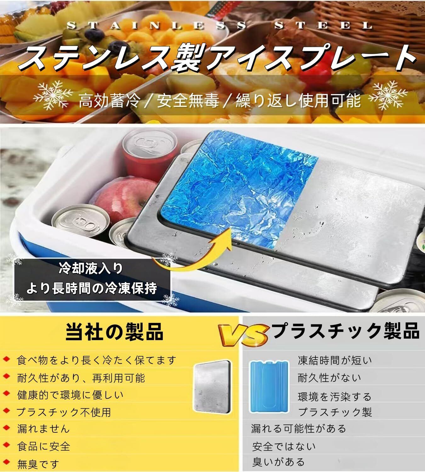 ステンレス 保冷剤 アイスパック 長時間 長持ち コンパクト保冷剤倍速凍結&驚異の保冷力 【新改良型 限定版-倍速凍結】最高な冷却用品 繰り返し使える クーラーボックス アウトドア レジャー 薄型 お弁当 クール 長方形 ひんやり 多目的クーラーアクセサリー ハイキング キャンプ 釣り