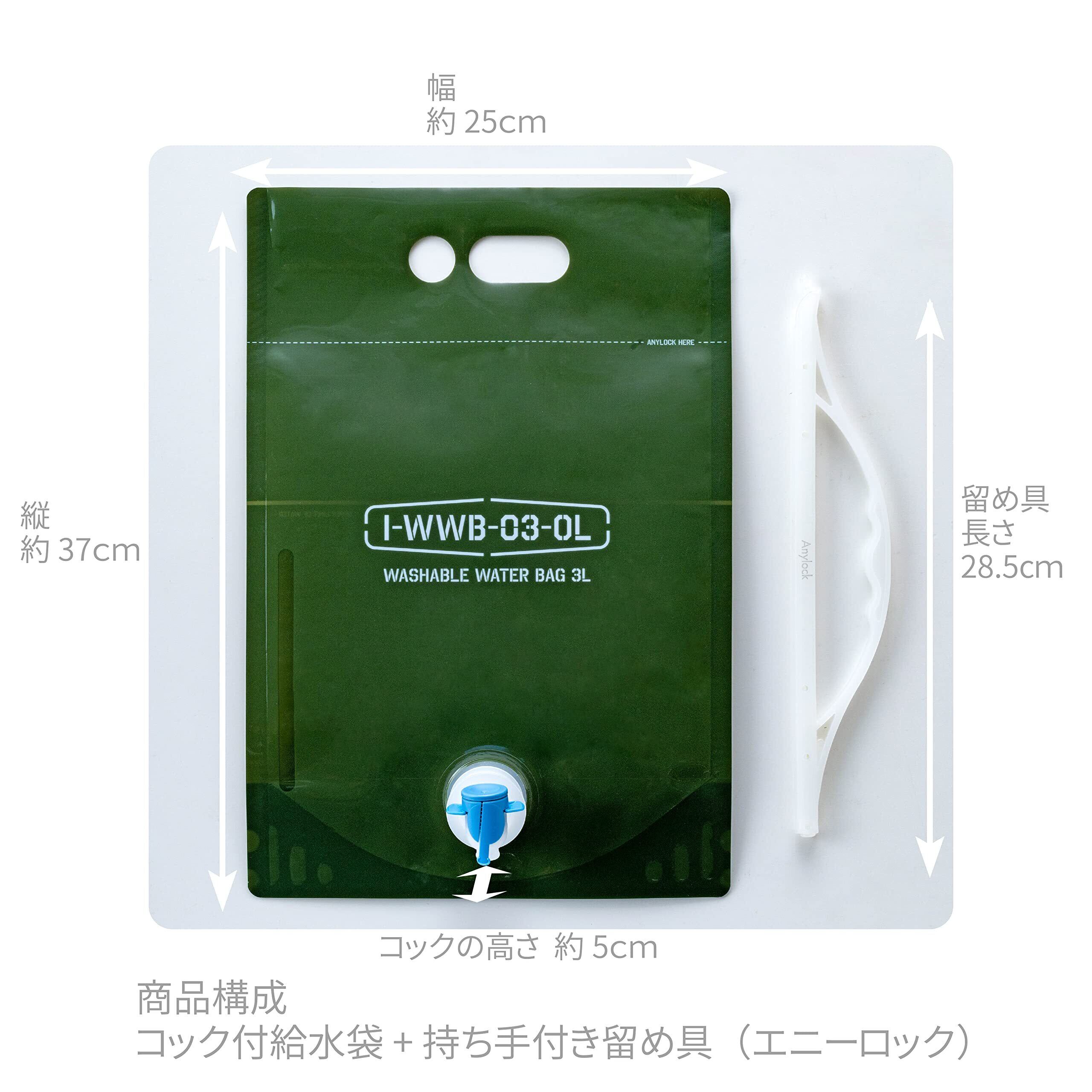 岩谷マテリアル(Iwatani Materials) 水タンク ウォッシャブルウォーターバッグ 3L オリーブグリーン WWB-3OL 注ぎやすいコック付き キャンプ レジャー 防災 約33×29×14cm