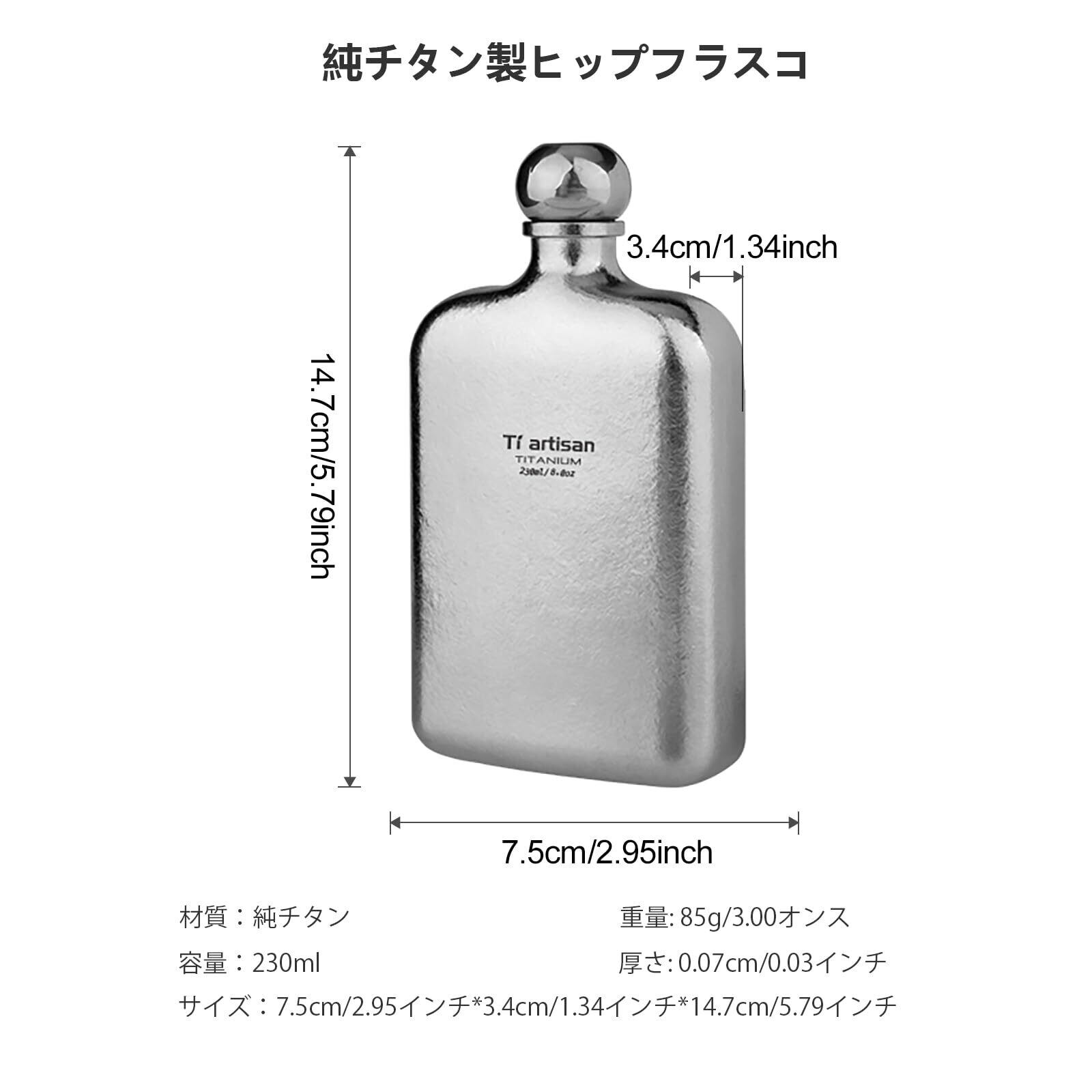 チタンワインフラスコ アウトドア キャンプ ハイキング 登山 超軽量 チタン フラスコ ワインボトル (7.8液量オンス(シルバー))