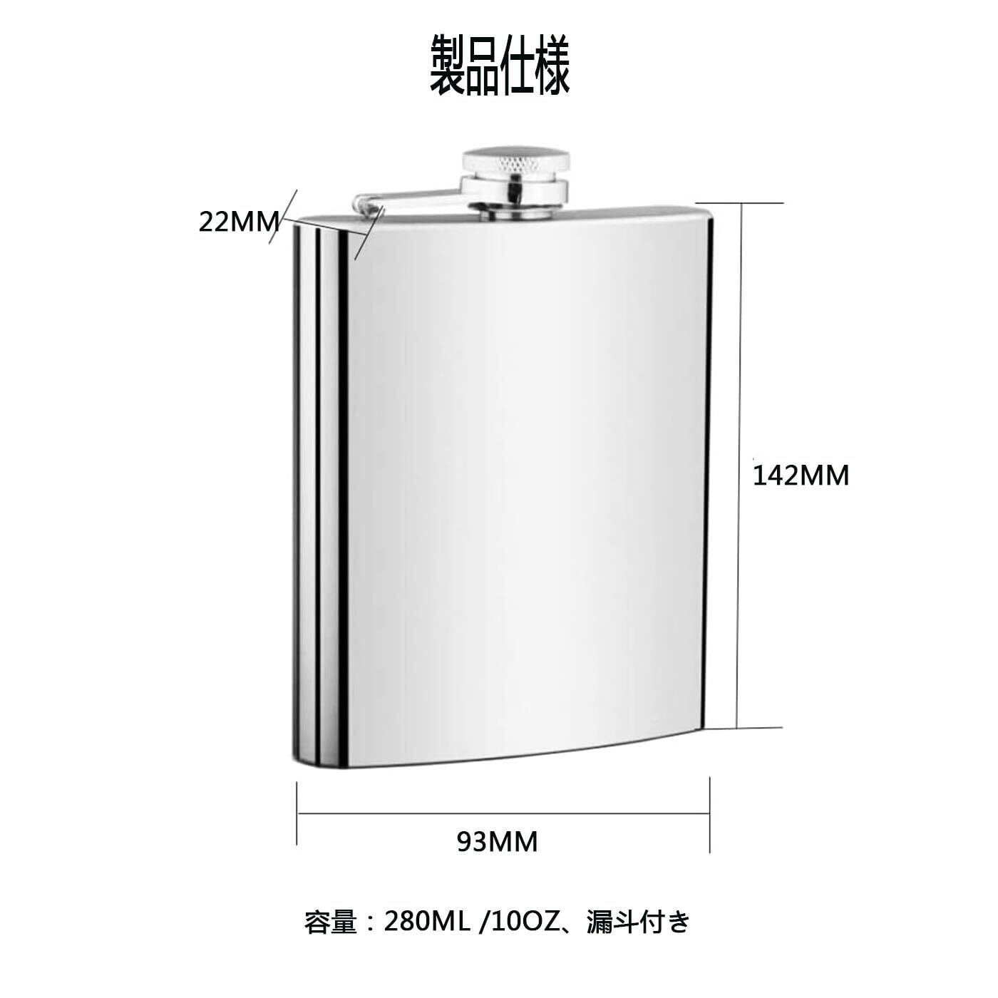 スキットル ヒップフラスコ ステンレス製 漏斗付き 280ml/10oz 大容量 ウイスキー 清酒 ボトル 携帯便利