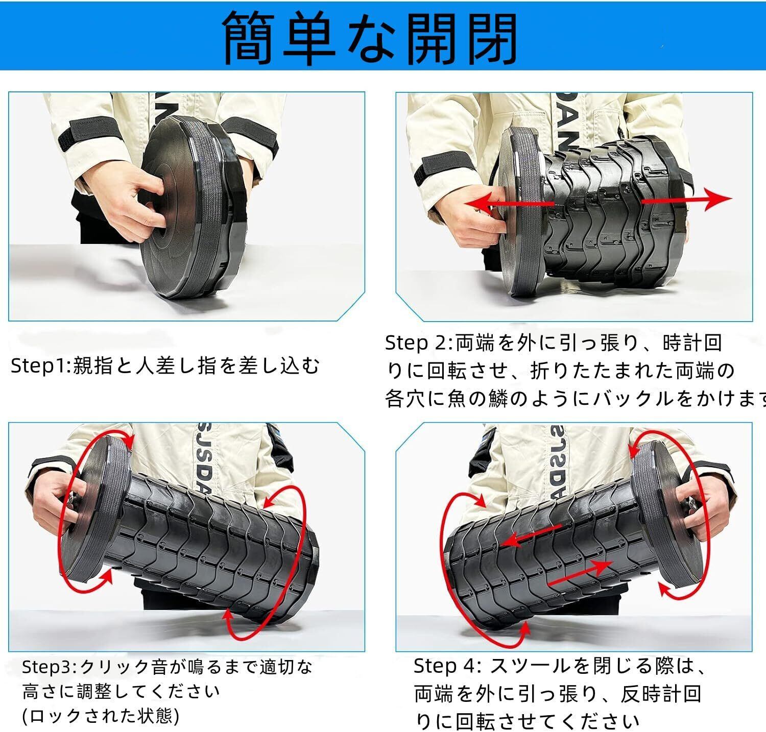 使いやすいこれらのポータブルスツールは、数秒で簡単に開閉できるように、反時計回り/時計回りに回します。どこでも座ってくつろぎましょう!アップグレードされた素材高強度の重いPPプラスチック素材で作られており、この伸縮式折りたたみスツールは最大200 kgの重さに耐えることができ、異なる体重の人にとっても使いやすいです。