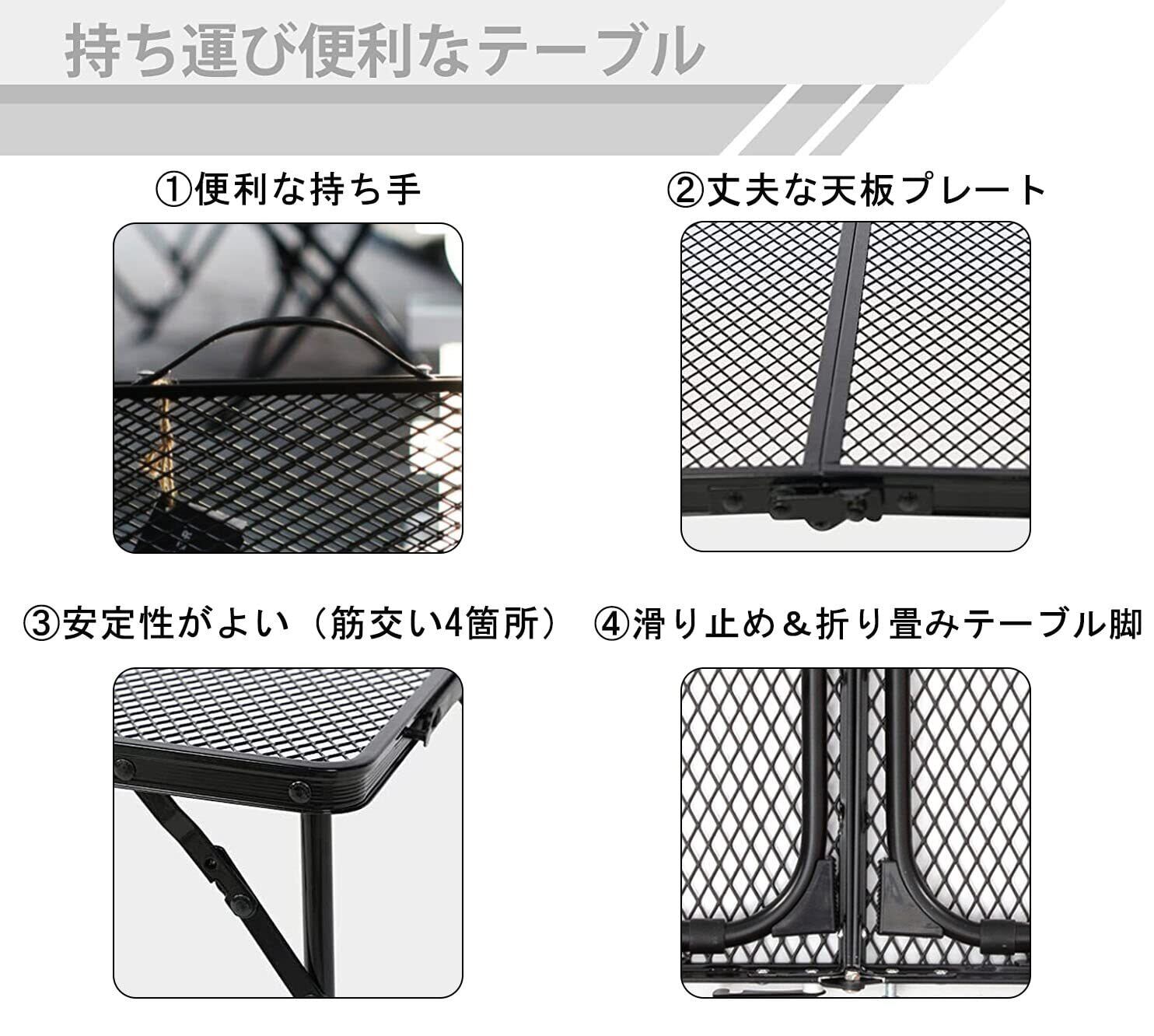 ■【多用途でおしゃれなデザイン!】テーブルのメッシュデザインは、通気性も良く、見た目にもおしゃれで、キャンプだけでなく、庭での使用や新しいスタイルのバーベキューにも最適です。