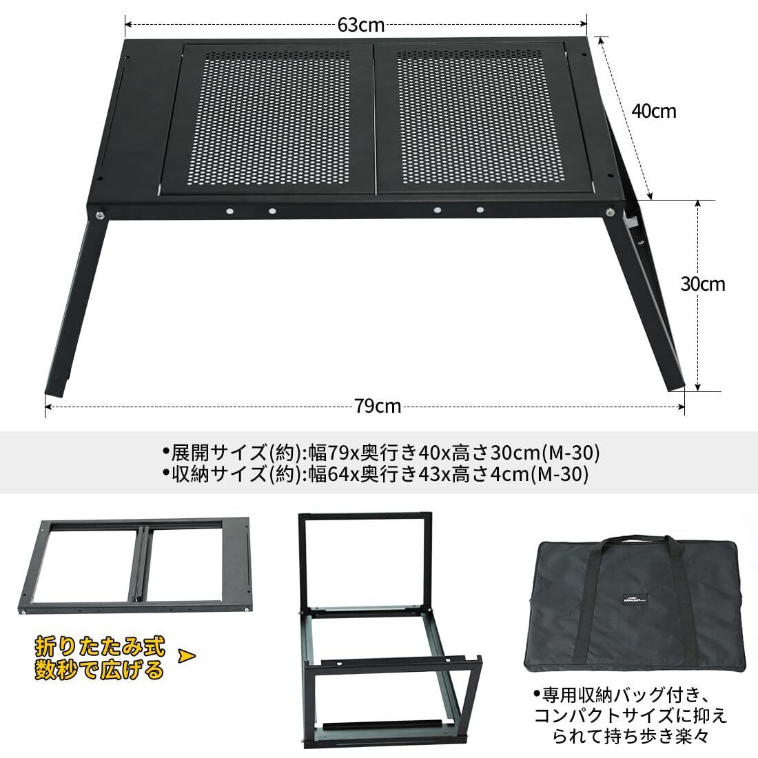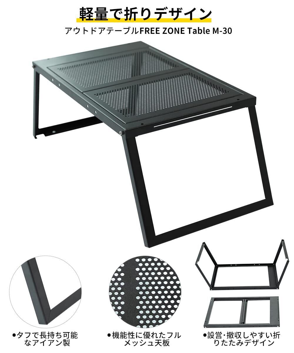 SoomloomテーブルFREE ZONE Table M-30フルメッシュ アイアン穴付き天板 折りたたみ式焚き火台 超軽量 無限拡張可能 キャンプ/アウトドア