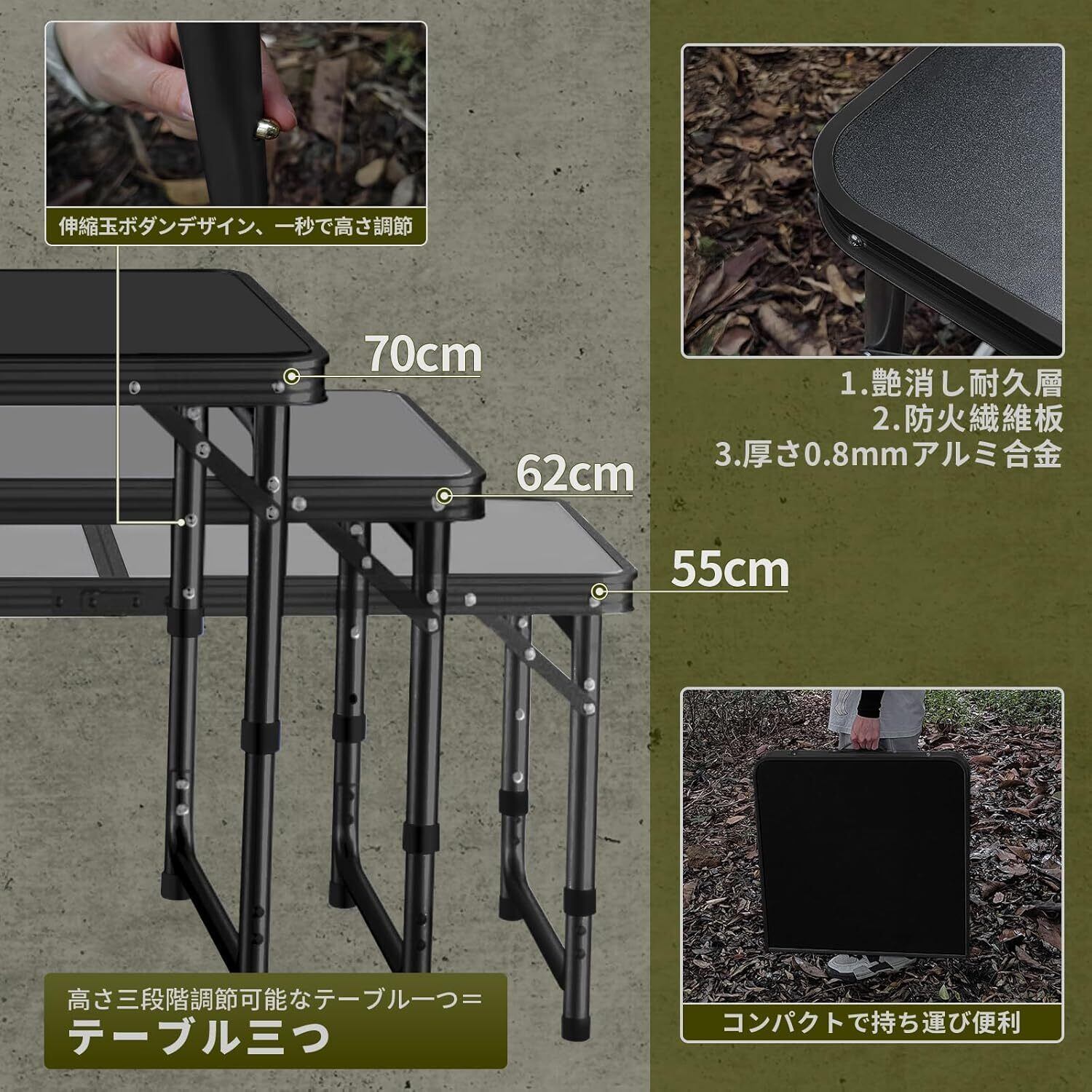 キャンプテーブル アウトドア テーブル【日本企業】 折りたたみ 120CM 3段階高さ調整可能 ピクニック レジャー キャンプ用 折畳み コンパクト 収納 簡単組立(くろ,スタイルB)