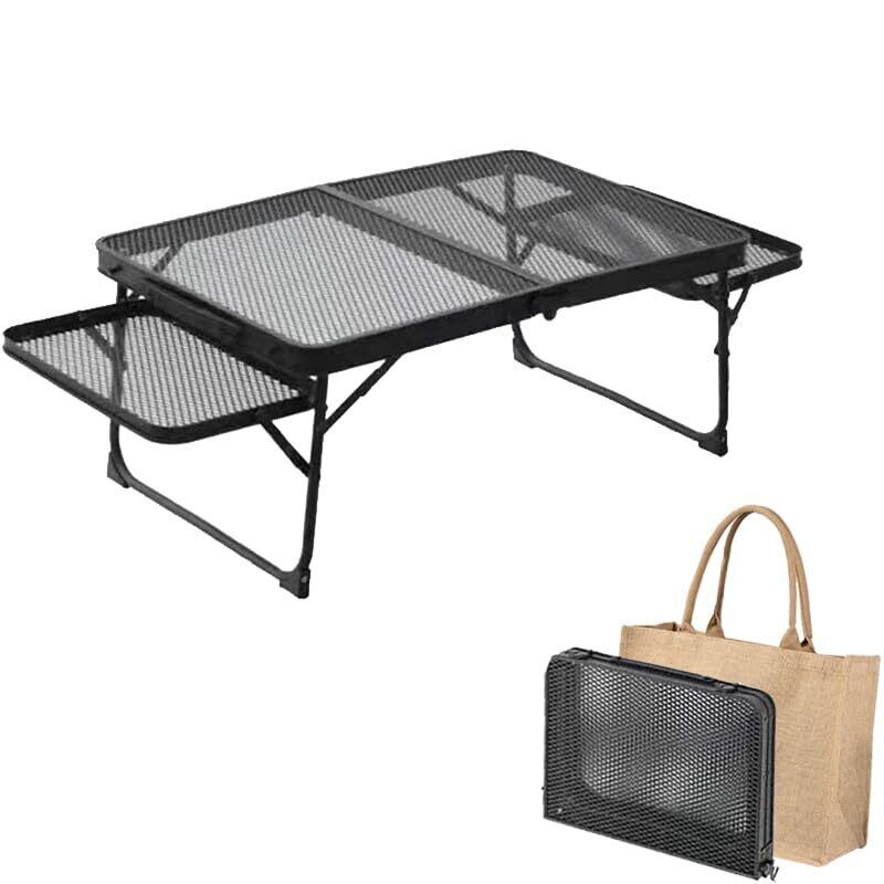 推薦する2025年新 折りたたみテーブル アウトドア 折りたたみ式ミニ キャンプ メッシュ 屋外ポータブル 木目メッシュ収納 ミニ 軽量 焚き火台耐熱ローテーブル 板付き 金属素材 レジャーテーブル (W-2)
