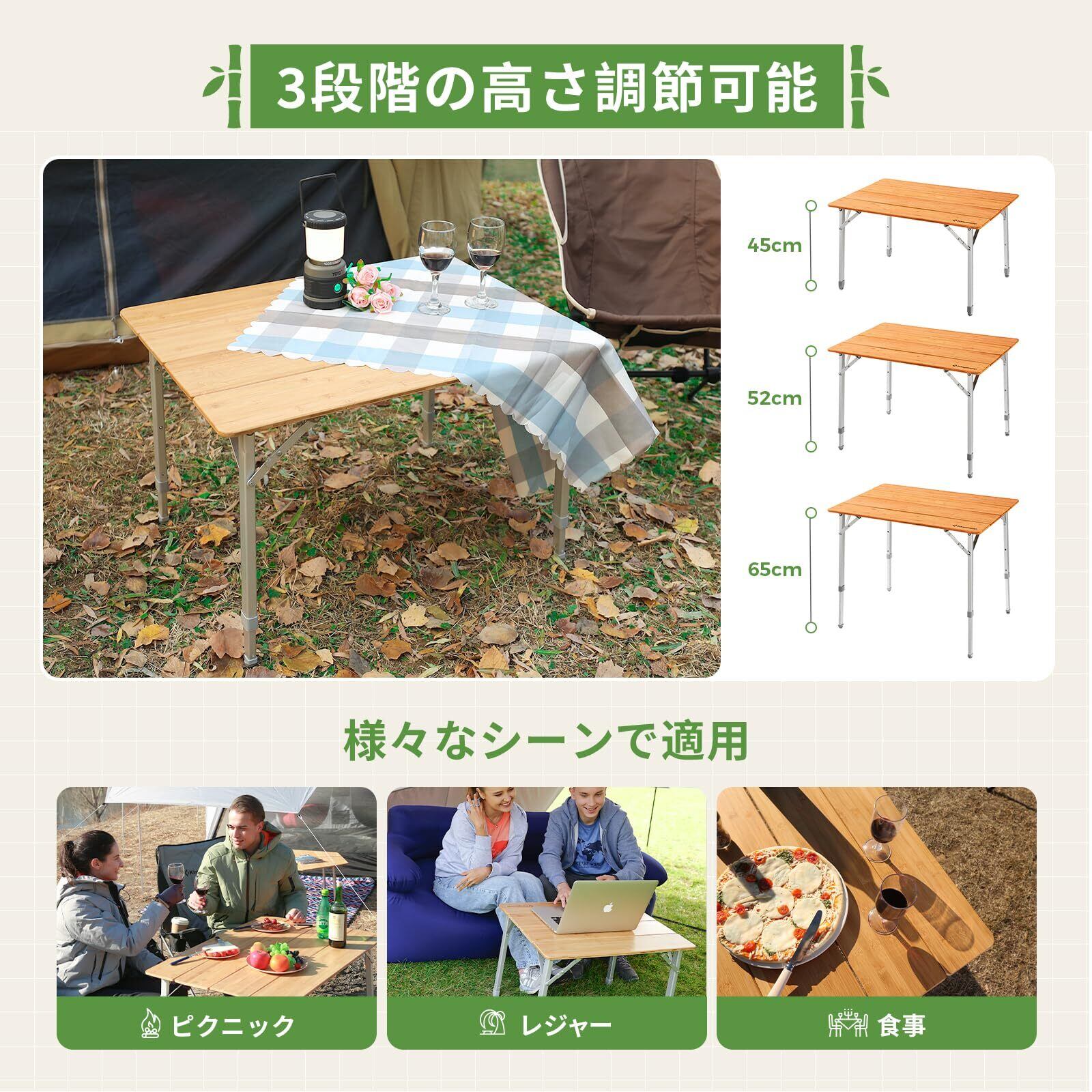 KingCamp 折りたたみテーブル キャンプ テーブル アウトドア 高さ調整 バンブー ロールテーブル 天然 孟宗竹 ダイニングテーブル コンパクト 高耐荷重 おしゃれ ピクニック ファミリー 収納付き