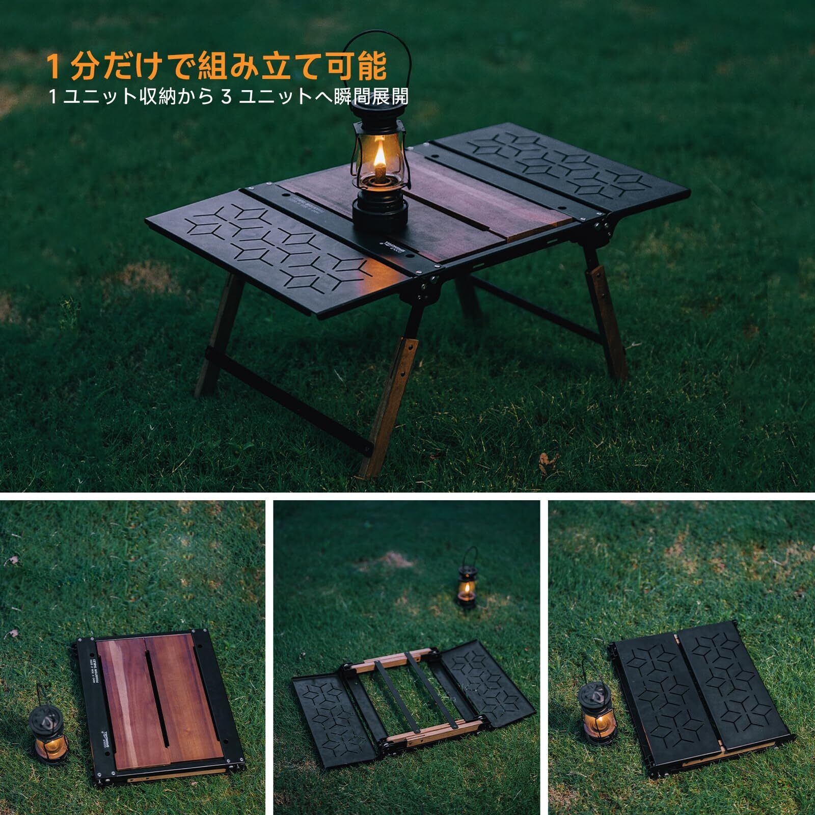 【組み立て不要!瞬間展開デザイン】ツール不要の簡易展開構造で、開封すればすぐに使用可能!女性や子供でも手軽にセットアップできる設計で、キャンプ現場での準備作業をストレスフリーに。折りたたみ時はテーブル脚とパネルが一体化してコンパクトに収まり、力を使わずに片手で操作可能です。