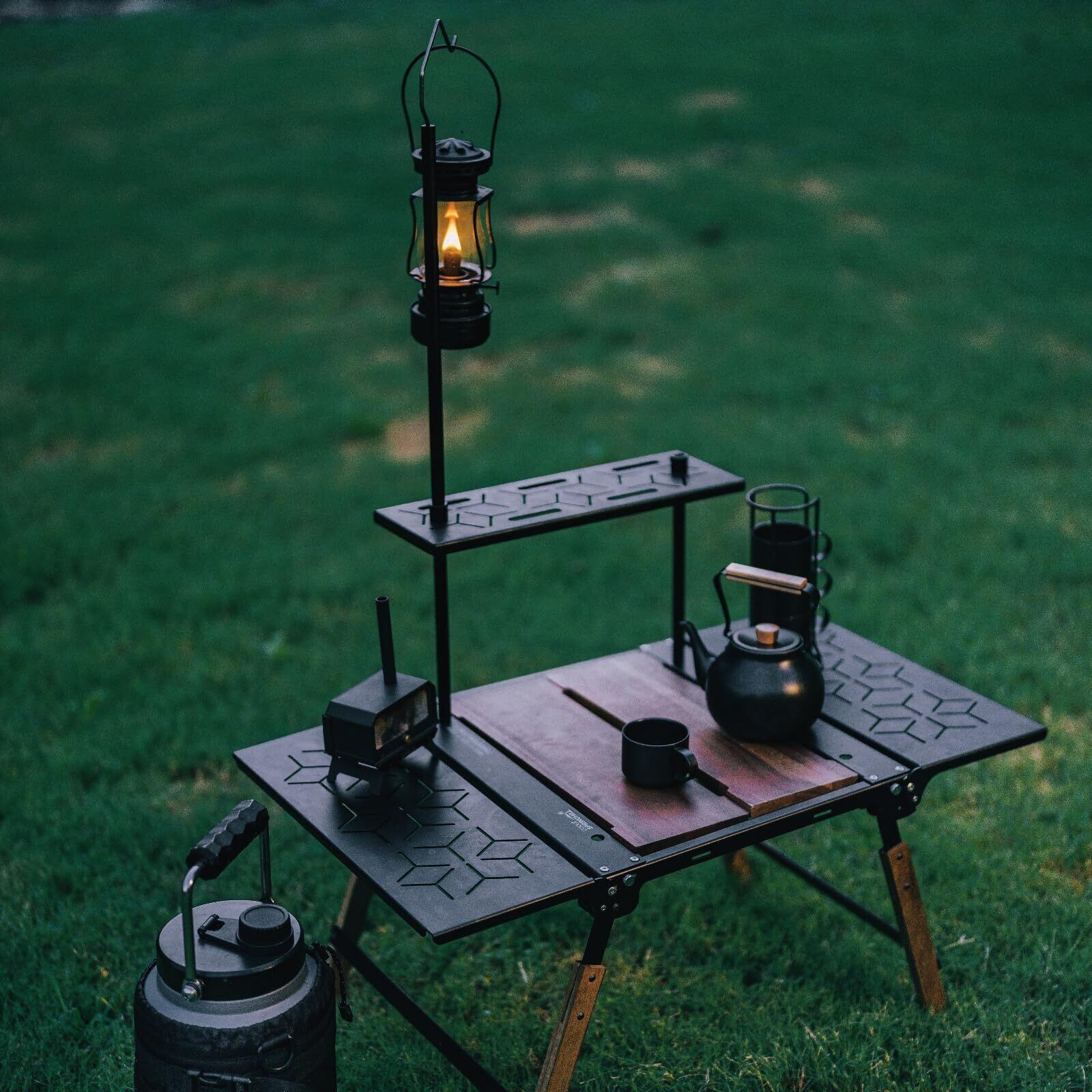 【デザイン性 × 機能性の融合】アルミニウム素材のメタリック光沢に、木目調パネルとブラックフレームがマッチング。キャンプ現場の自然環境と調和しつつ、自宅のリビングやバルコニーでもモダンなインテリアとして存在感を放ちます。軽量でありながら堅牢な構造で、長期使用にも耐えます。キャンプ / 焚火 / 登山 / 車中泊はもちろん、防災対策や自宅でのイベント用テーブル、室内家具とのコーディネートにも幅広く活躍します。