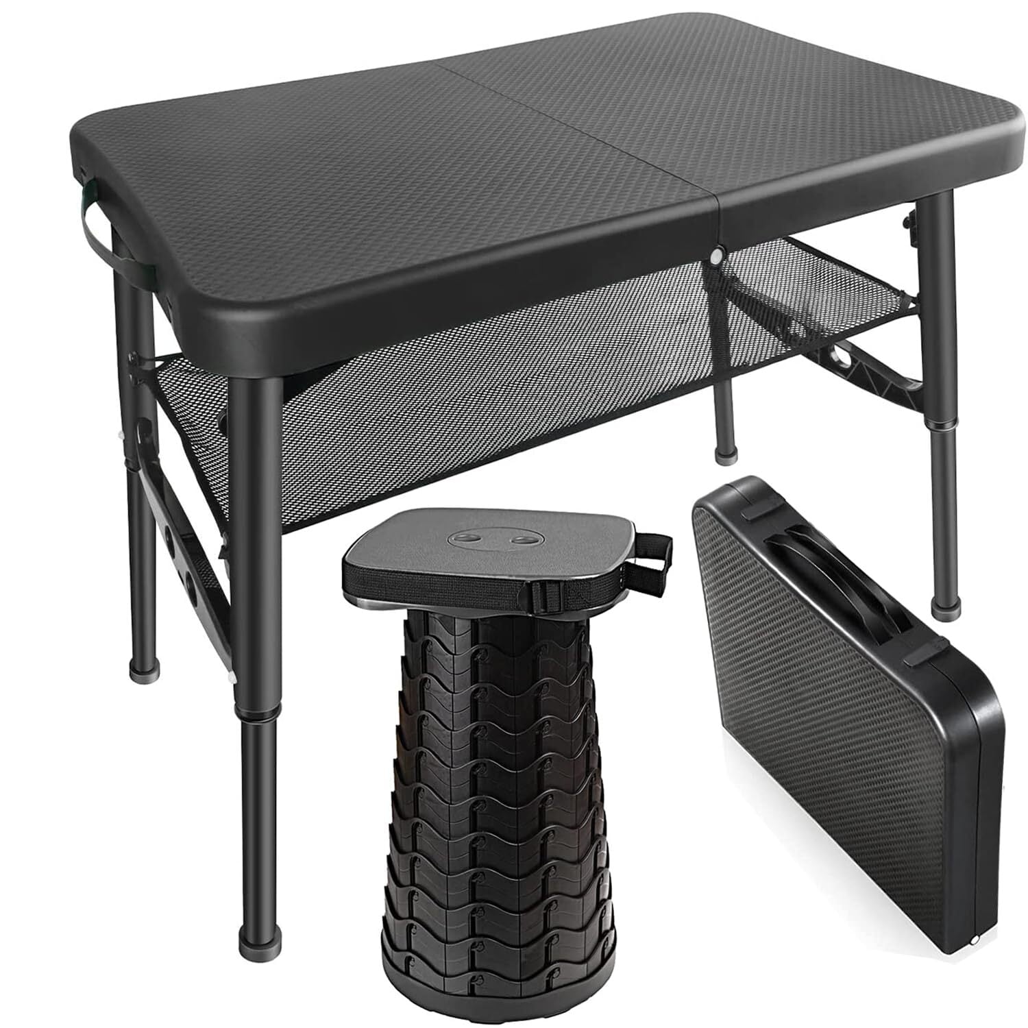 【新着商品】折りたたみテーブルセット チェア付き アウトドア キャンプ テーブル 高さ調整可能 室内屋外兼用 (テーブル・チェアセット/黒)