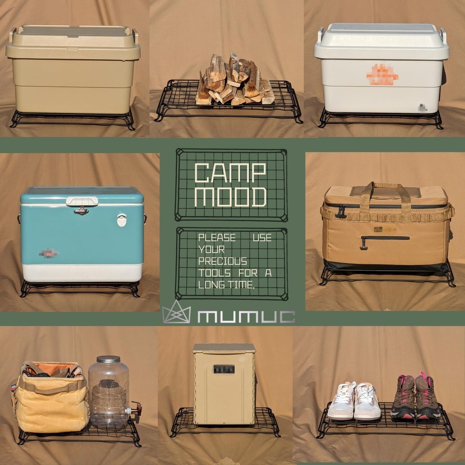 ■【多用途に使えるマルチスタンドの登場!】ガレージブランドのマルチスタンドは、クーラーボックスや薪、ツールボックスなど、さまざまな物を効率的に収納・展示するために設計されています。アウトドアはもちろん、キャンプ場や自宅でも重宝するアイテムです!