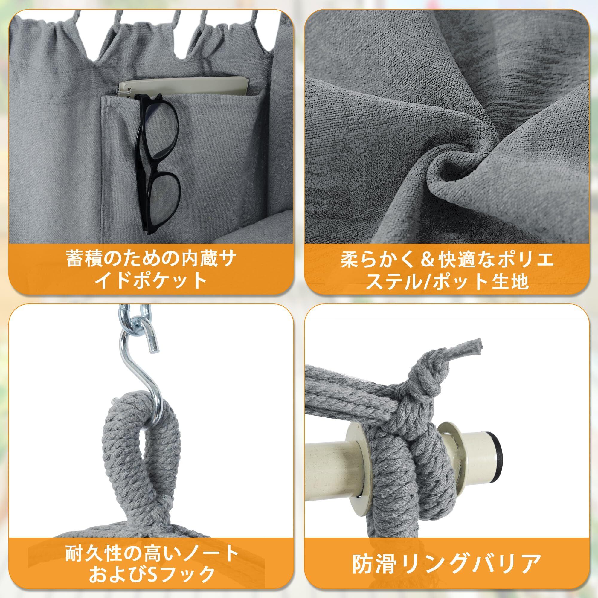 【安心の素材】柔らかく通気性に優れ、耐久性と耐裂性に優れたコットン生地を使用。生地は厚みがあり、快適にくつろげます。ロープは中太のロープを複数本使用し、体重を支えるのに十分な強度を備えています。