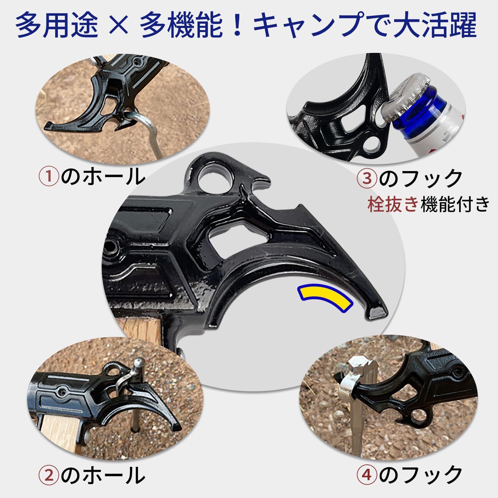 ■【多機能で便利!】ペグハンマーとしての役割だけでなく、アウトドアのあらゆるシーンで使える多機能性を兼ね備えています。ハンマー部分はしっかりとした重さがあり、ペグを効率よく打ち込むことができます。