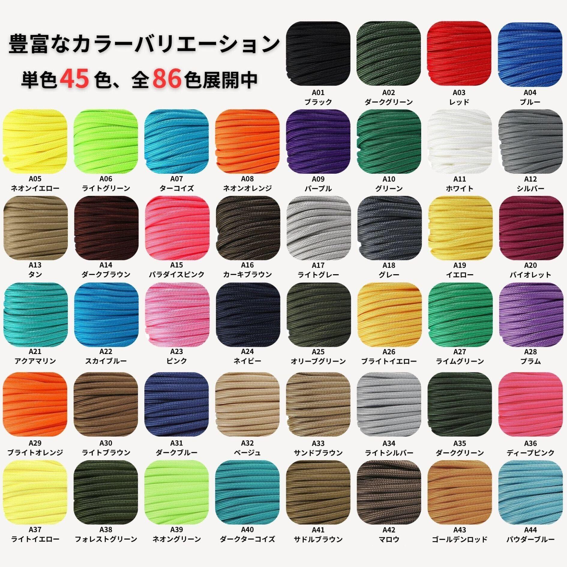 ■【多彩なカラーと使い道!】このパラコードは、全60色の中からお好みの色を選べるため、アウトドアのアクセントやクラフト用など、多用途に利用できます。特にキャンプやアウトドアイベントでの固定紐として大活躍します!
