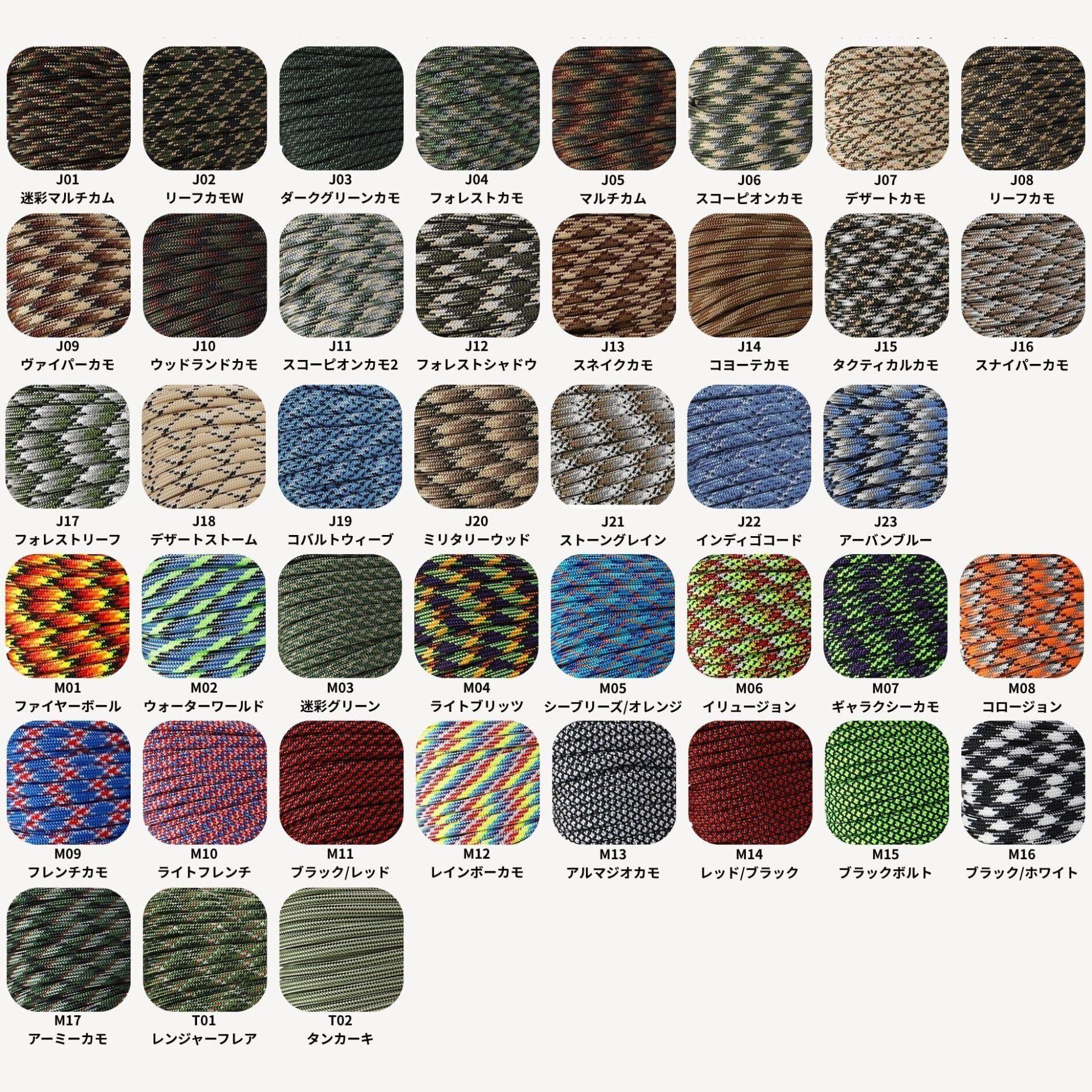優れた耐久性と柔軟性があり、テントやタープの設営時のガイロープとしてはもちろん、パラコードブレスレッドなどアクセサリーの制作にも最適です。