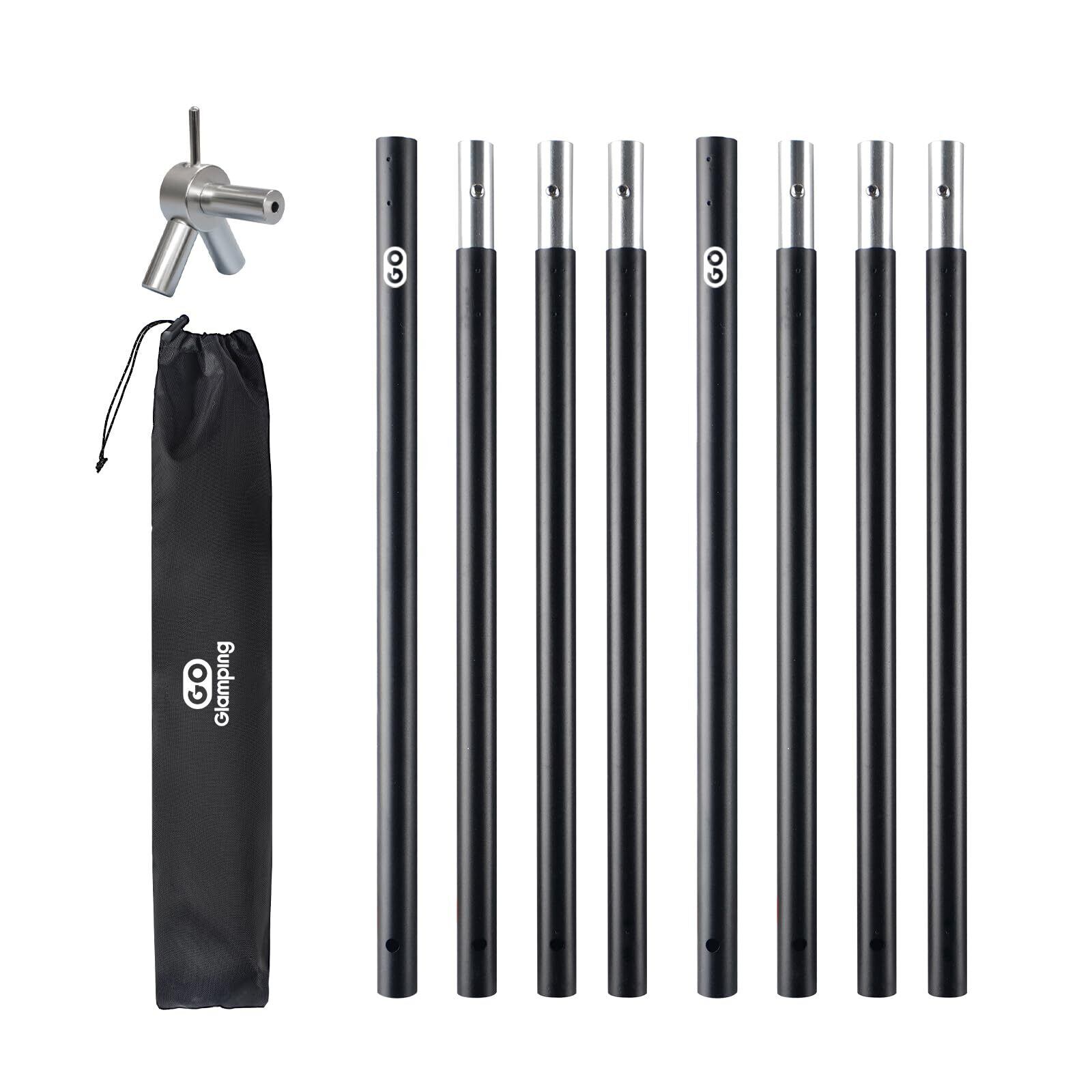 GOGlamping 新型 二又ポール 二股化 パップテント専用 アルミ合金 調節ベルト付き ボタン式 軽量 A6061 太さ19mm 高さ120-130CM 組み立て簡単 コンパクト テントポール アウトドア キャンプ収納袋付き