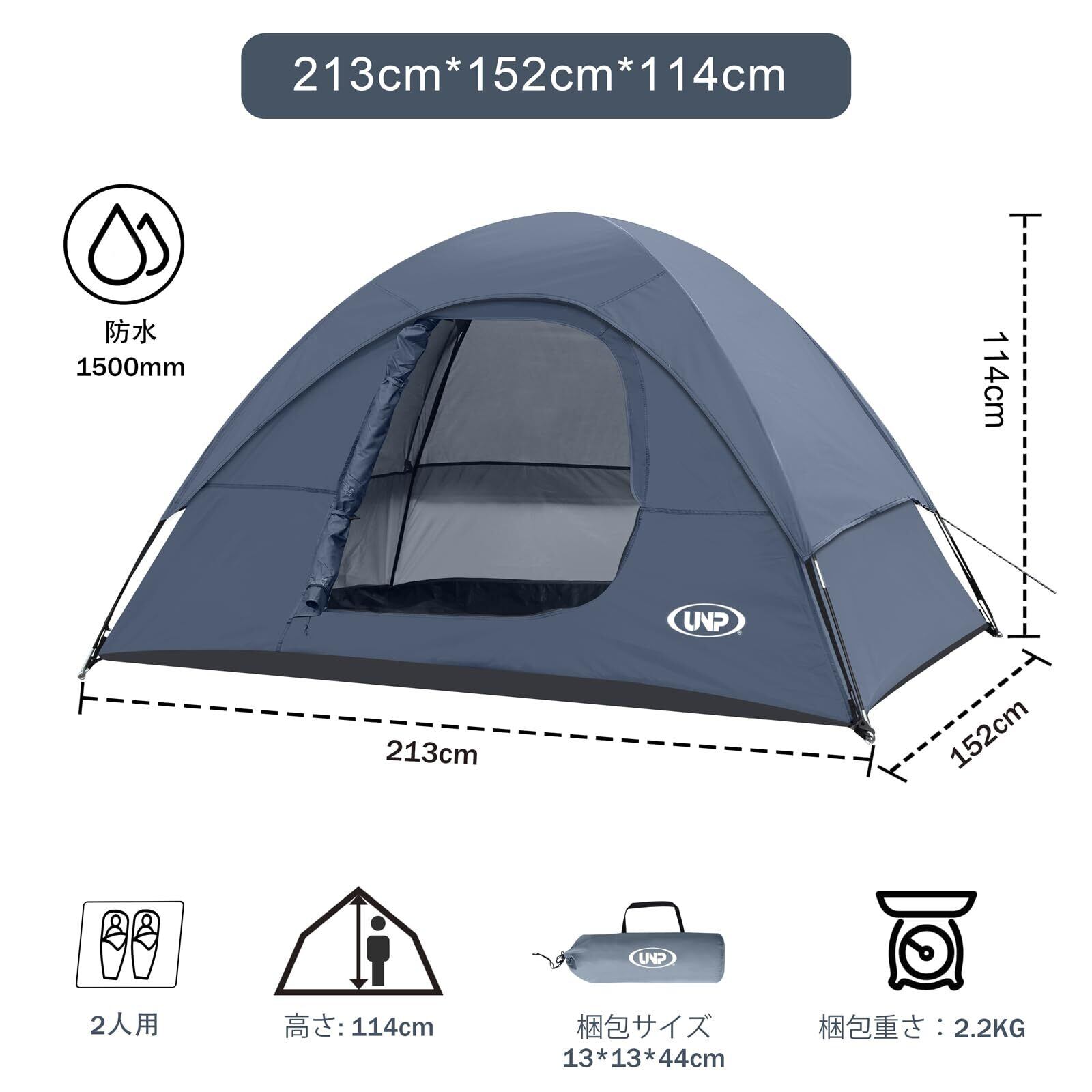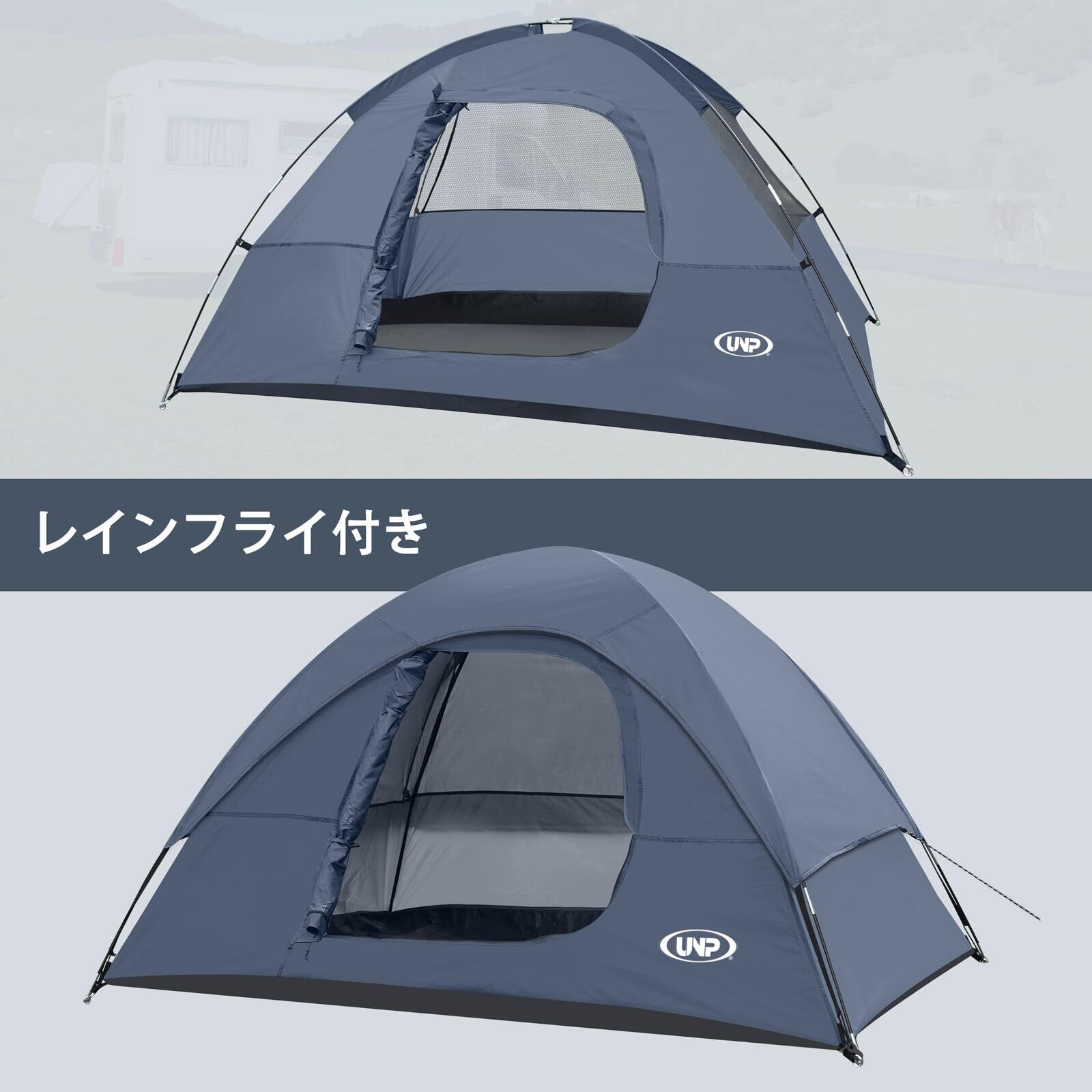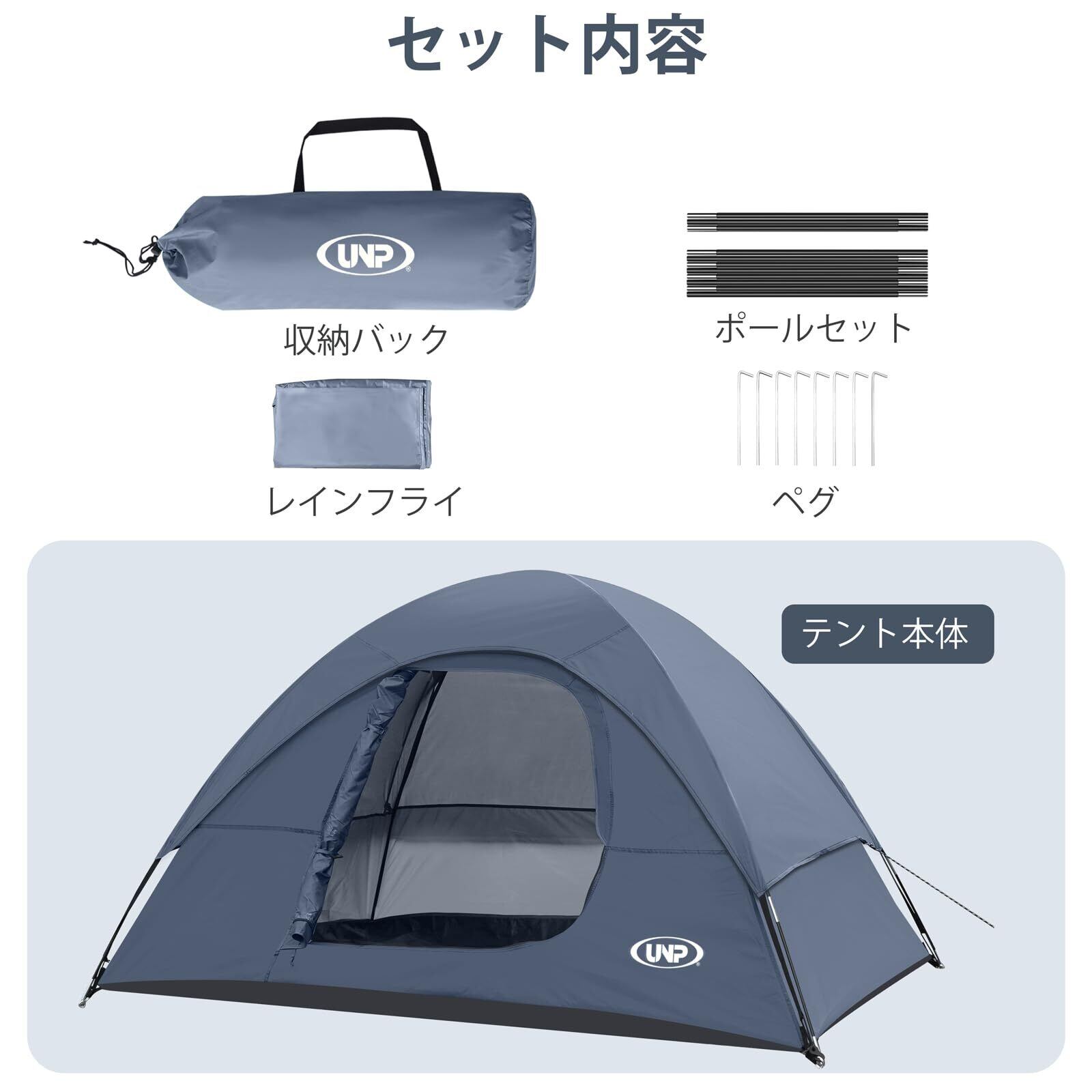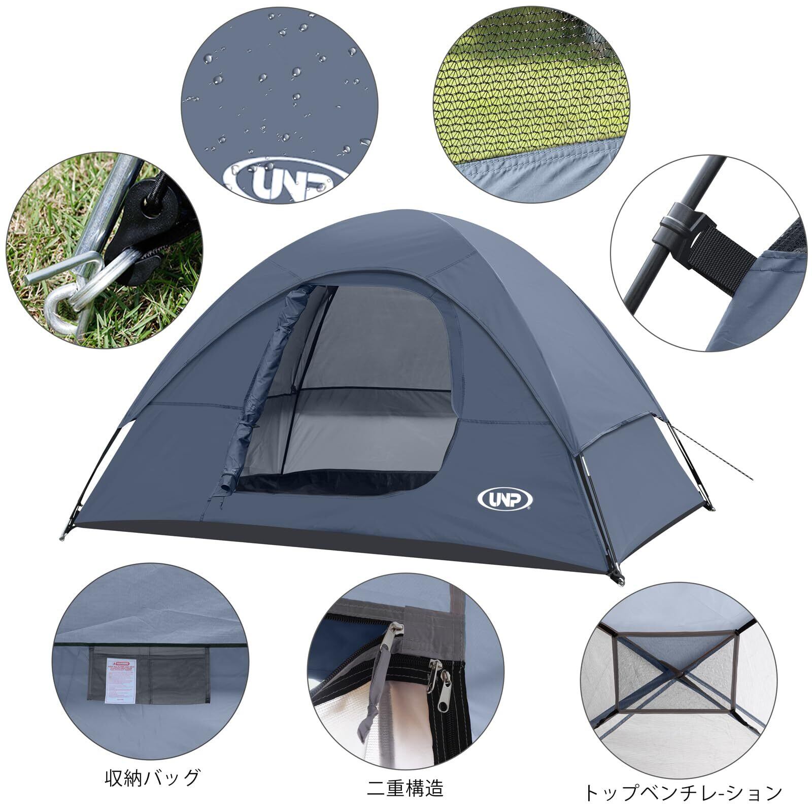 UNP テント 2人用 キャンプテント 4人用 2~3人用 ソロテント 携帯超軽量 ドームテント 組み立て式 簡単設営 通気 防風 撥水 ピクニック キャンピング お花見/防災/登山/釣り対応 4シーズン 収納袋付き 2サイズ 3色