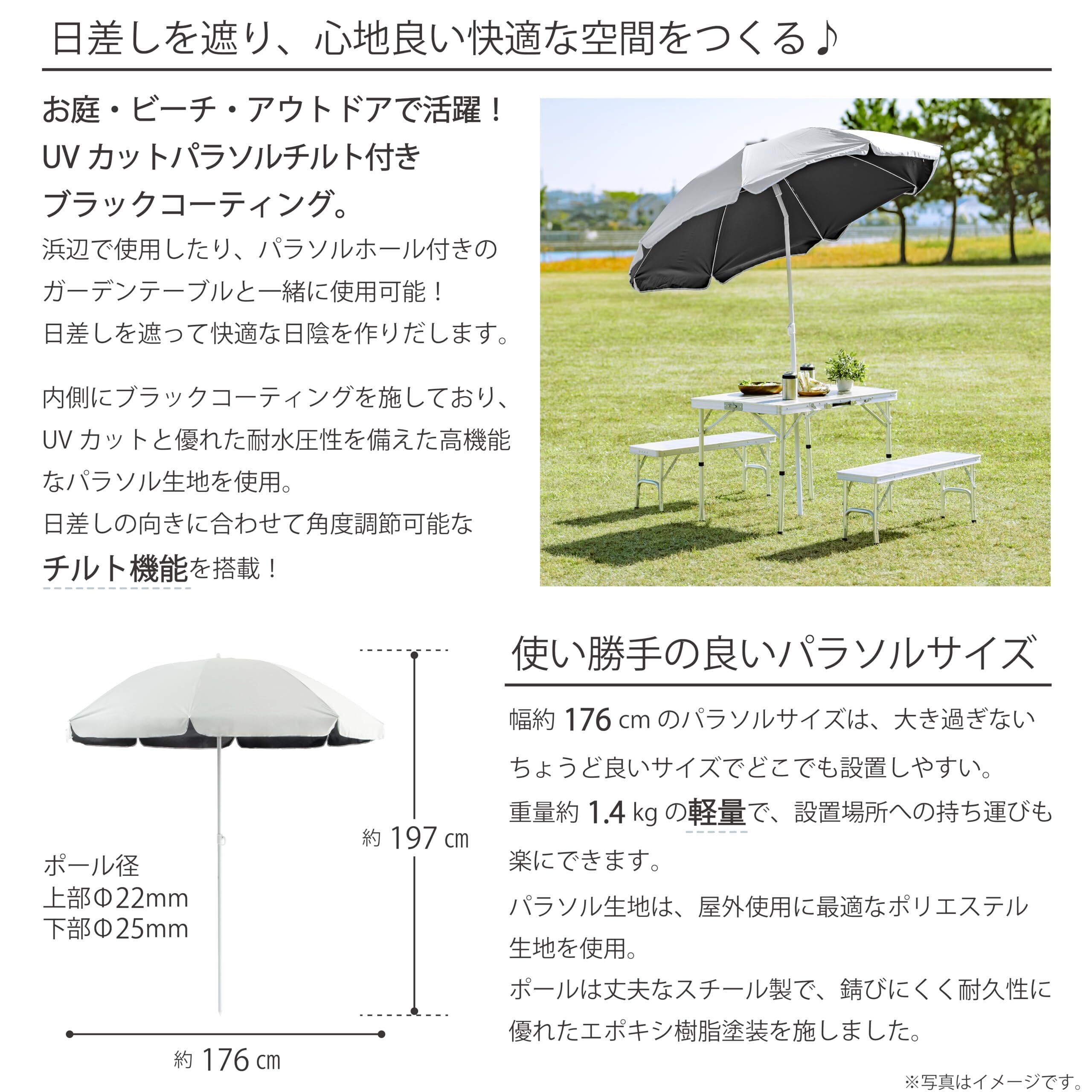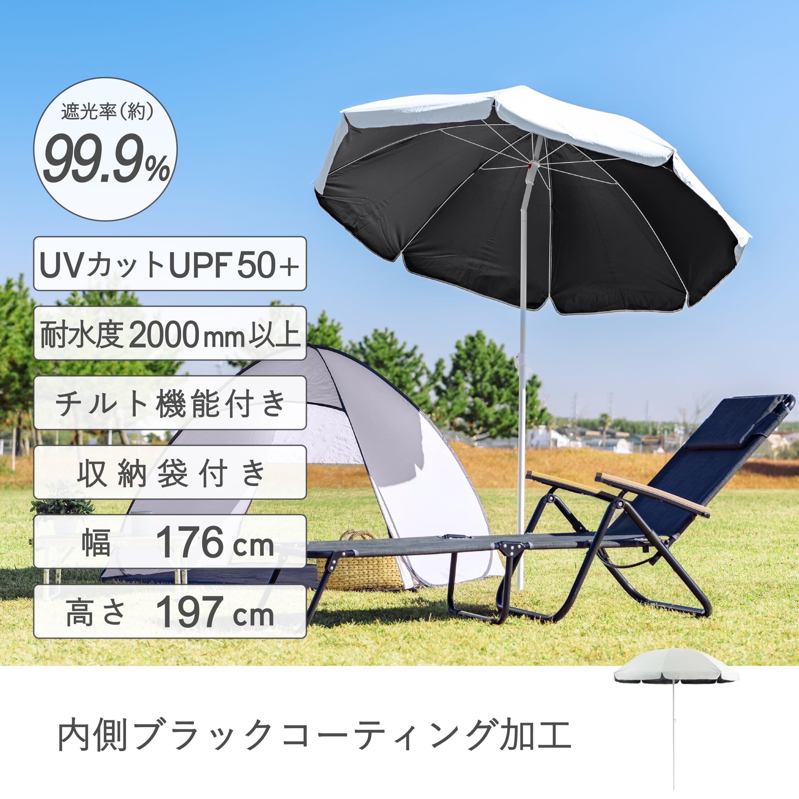 武田コーポレーション 【ビーチ・アウトドア・UVカット】 ホワイト 176×176×197cm UVカットパラソル チルト付き ブラックコーティング SBB24-2000