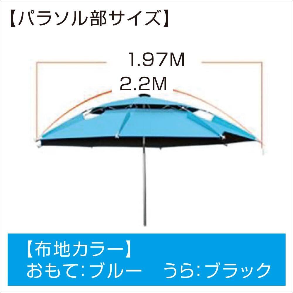 重量(kg):2.5 ■布地カラー:ブルー(表)/ブラック(裏) ■材質:アルミ/グラスファイバー/ポリエステル ■撥水加工 ■支柱径:25mm(下部)/22mm(上部)