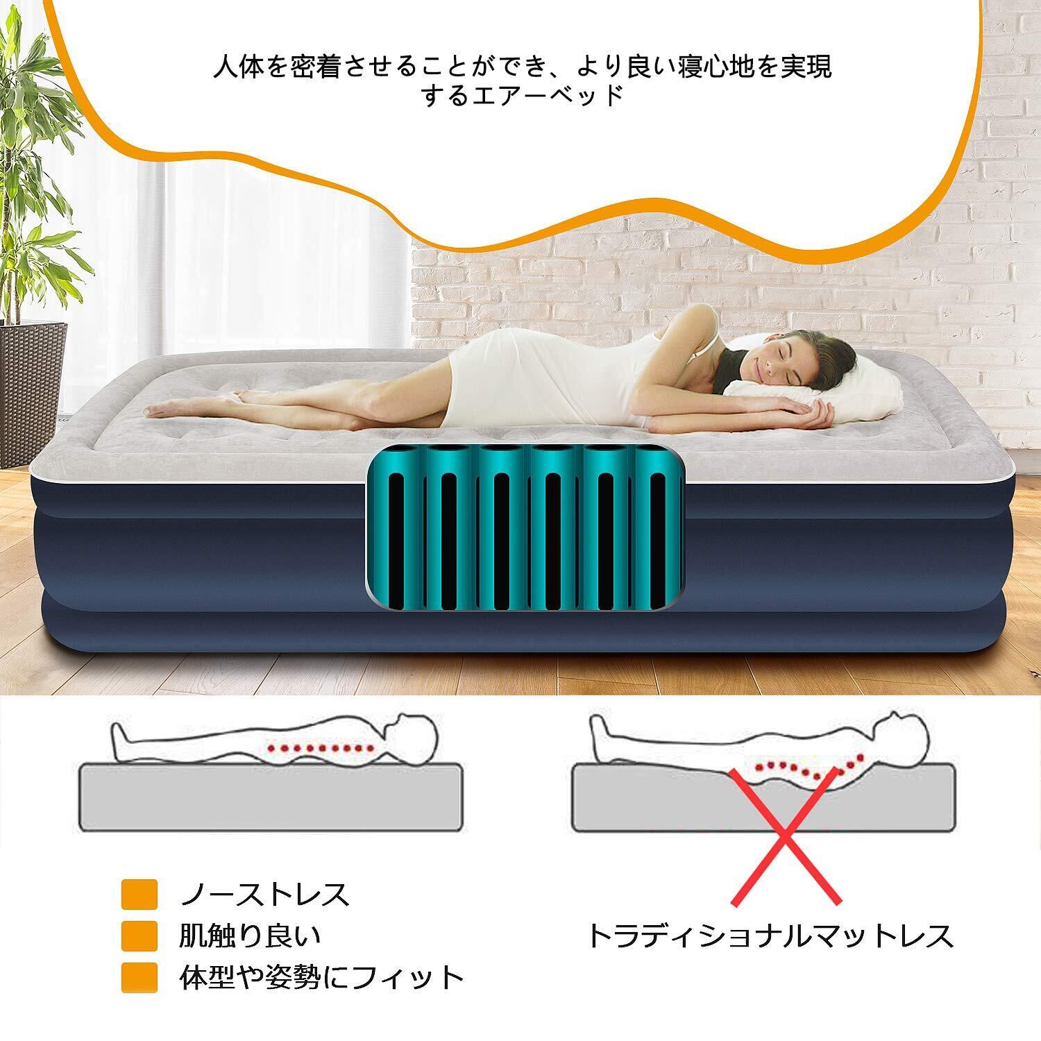 【様々なシーン活躍&セット内容】急な来客の時にも、おもてなしができます自宅用や来客用はもちろん、キャンプや旅行等のあらゆるシーンで快適にご利用いただけます。付属品:電動ポンプ、収納袋、リークリペアシール、日本語取扱説明書。ご使用中に問題やご不明な点がございましたら、お気軽にお問い合わせください。安心してご使用いただけます。