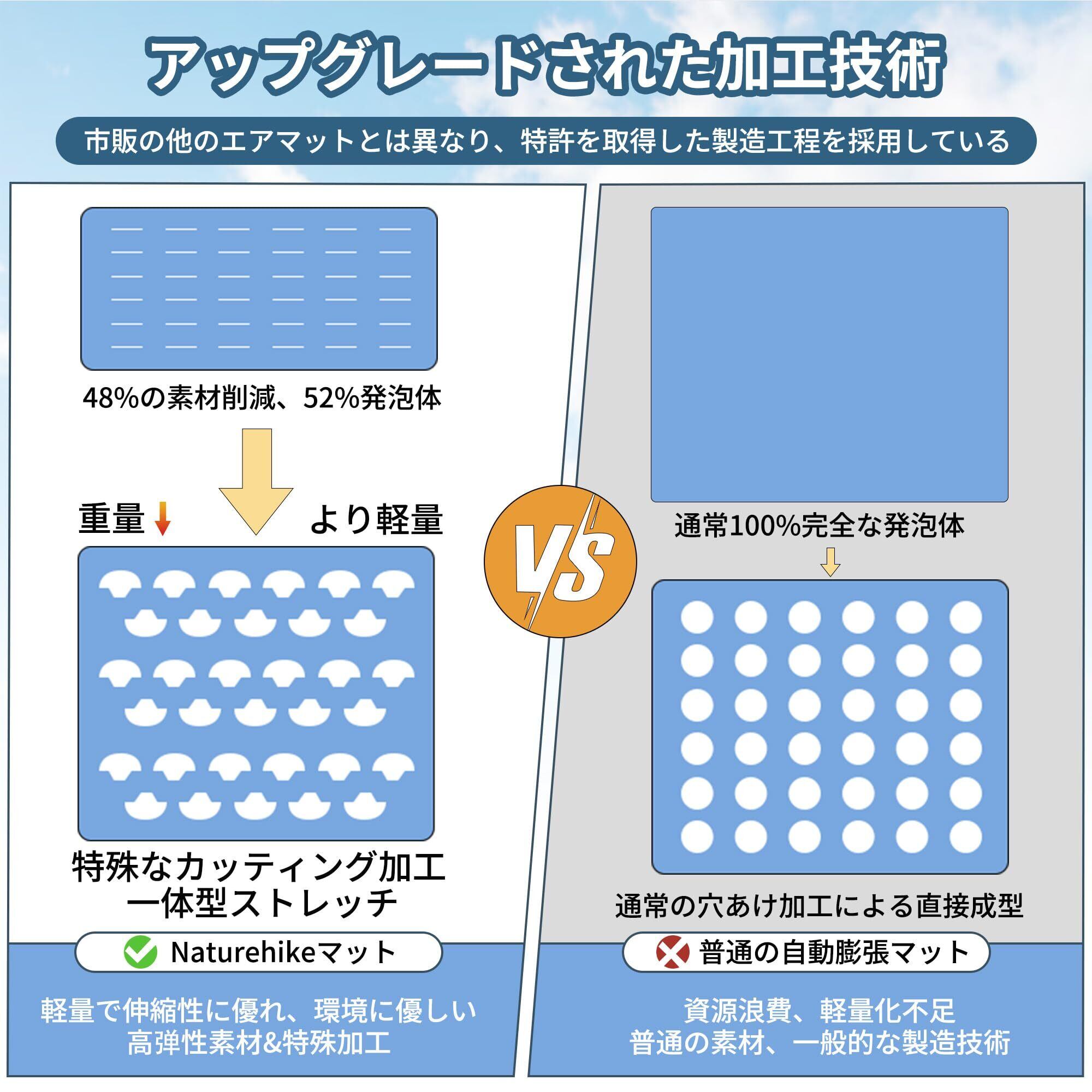 ■【自動膨張で手軽に快適な眠りを!】このNaturehikeエアーマットは、驚きの自動膨張機能を搭載しており、わずか数分で準備完了。手軽にキャンプや車中泊の際でもストレスなく、快適な寝床を提供します。