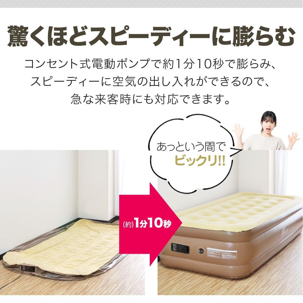 【特価セール】FIELDOOR 電動ポンプ内蔵 エアーベッド エアーマット 電動式 アウトドア キャンプ 海 防災 車中泊マット 車中泊 来客用 簡易ベッド 簡単設置 コンパクト収納 [シングル]