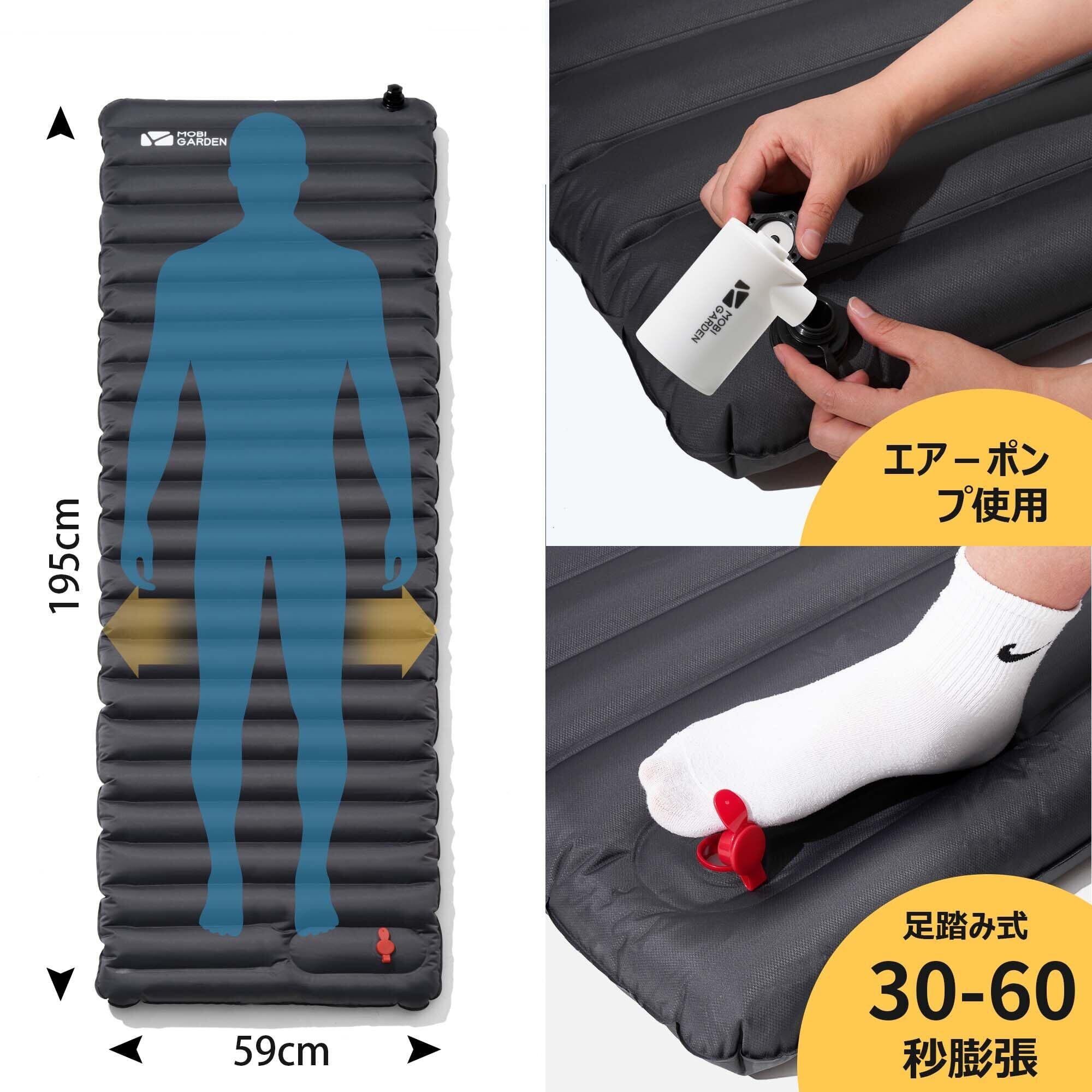 【人気商品】MOBI GARDEN エアーマット【足踏み&ポンプ両対応】 キャンプ マット 1人用 コンパクト 超軽量 防災グッズ アウトドアグッズ ハイキング お花見 登山 旅行 車中泊 収納袋付き