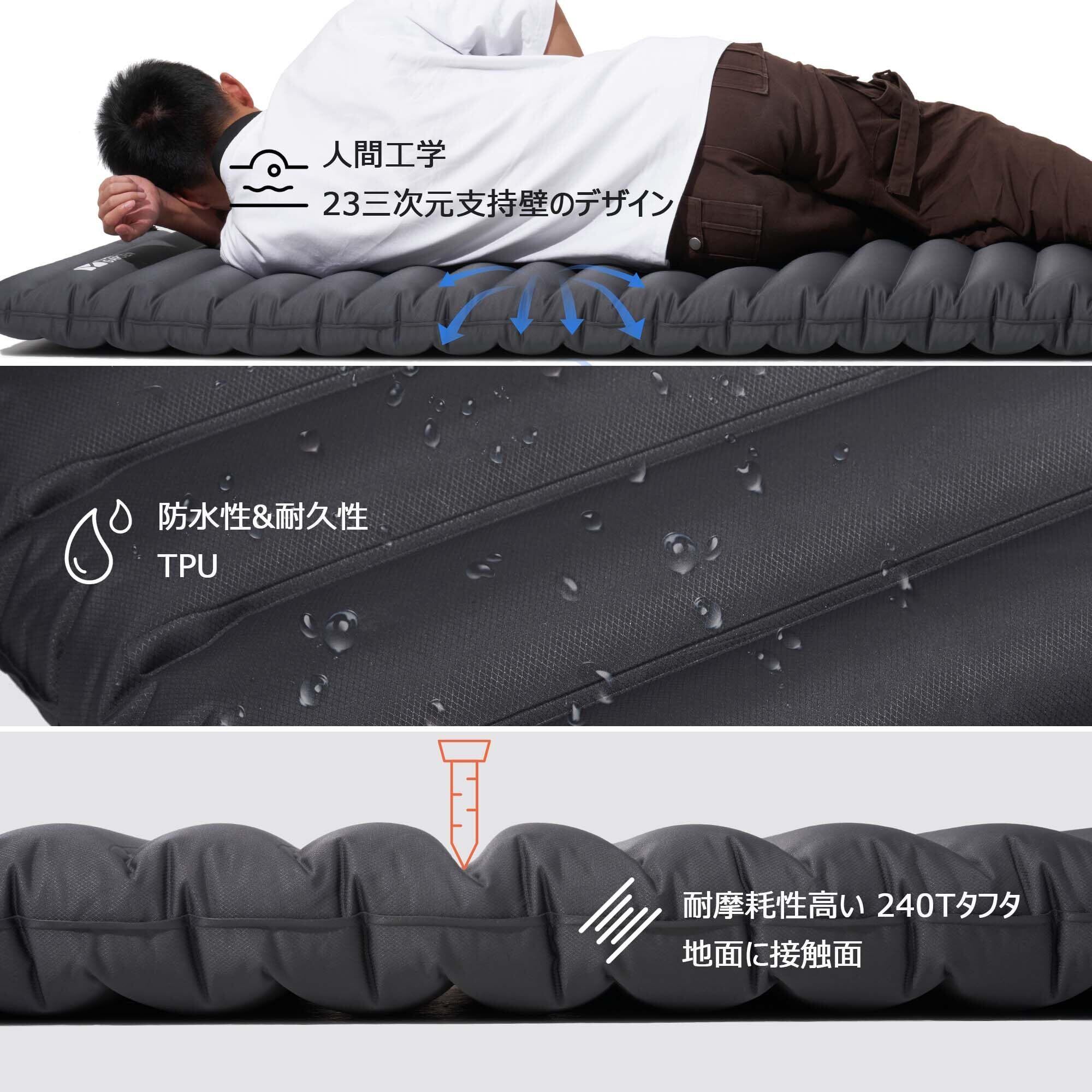 【驚異的な便利さ・足踏み&ポンプ両対応!】革新的なポンプを内蔵し、30〜60秒でマットが完全に膨らむ。手や足踏みで簡単に空気を入れられて、 空気入れで膨らませることも可能で、わずかな時間で準備完了。ダブルバルブを搭載して、空気の放出はスムーズに行え、撤収もストレスフリー!女性、子供、お年寄りでも簡単に完成できます。さらに、ダブルバルブ設計により空気漏れの心配もなく、夜中にマットがへたる心配もないので、アウトドアシーンで快適に使用できます。(ご注意:本製品は空気入れを含まず。空気入れを使用場合、充気程度は90%ほどのほうがいいです。)