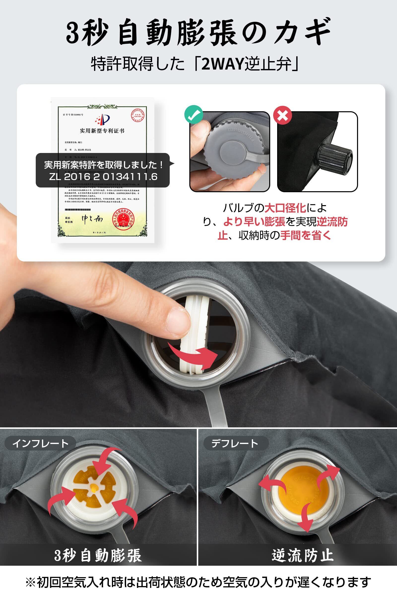 ■【2WAYバルブで調整自在!】2WAY逆止弁仕様を採用しており、空気の出入りがしやすく、好みに応じて高さ調整が可能です。自分の好きな寝心地を見つけ、いつでも快適な睡眠環境を提供します。