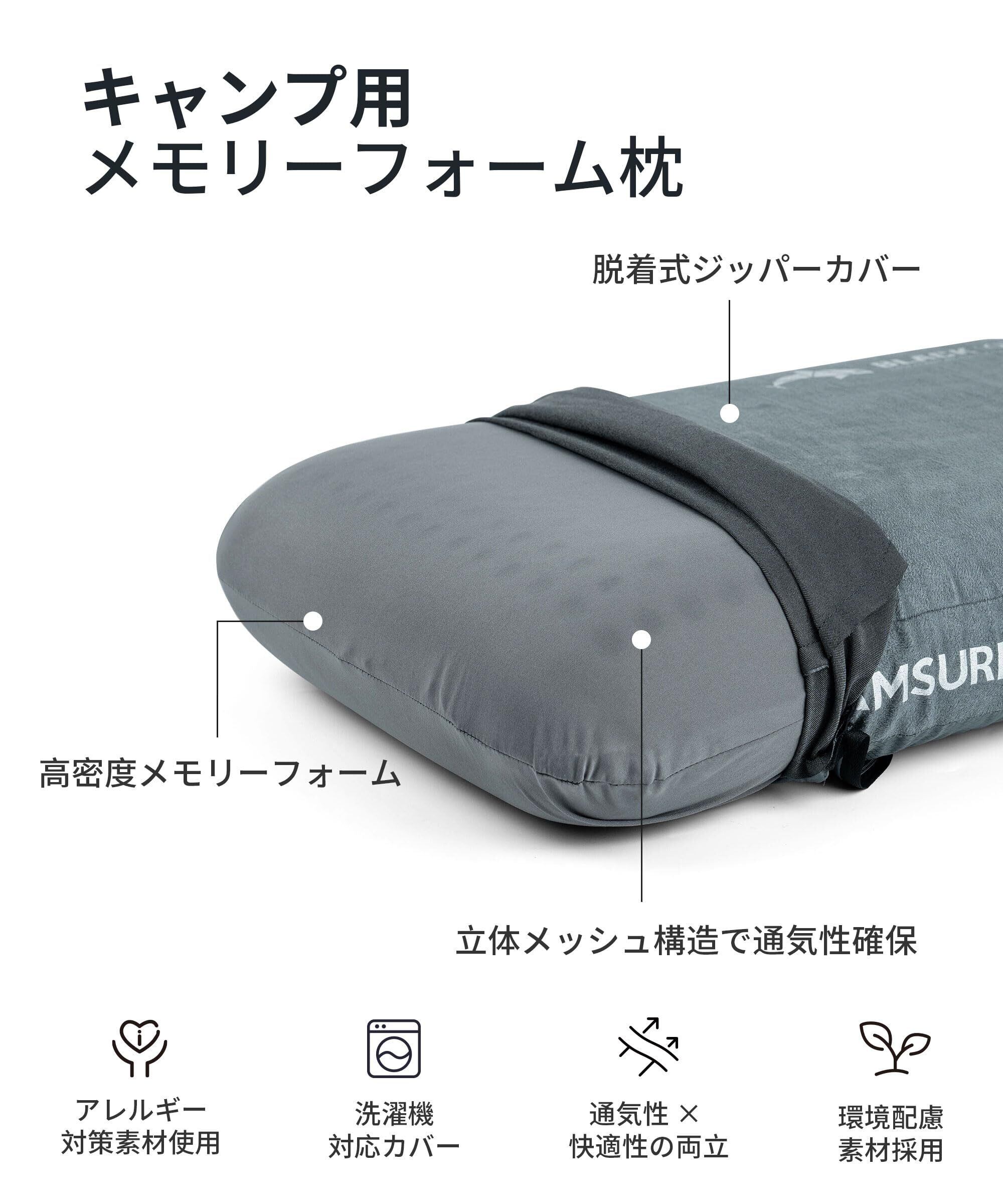キャンプ枕 メモリーフォーム トラベルピロー 携帯枕カバー洗える 通気性 オールシーズン使える 肌触りが良い 旅行必需品 飛行機 車中泊 キャンプ ハイキング バックパッキング用