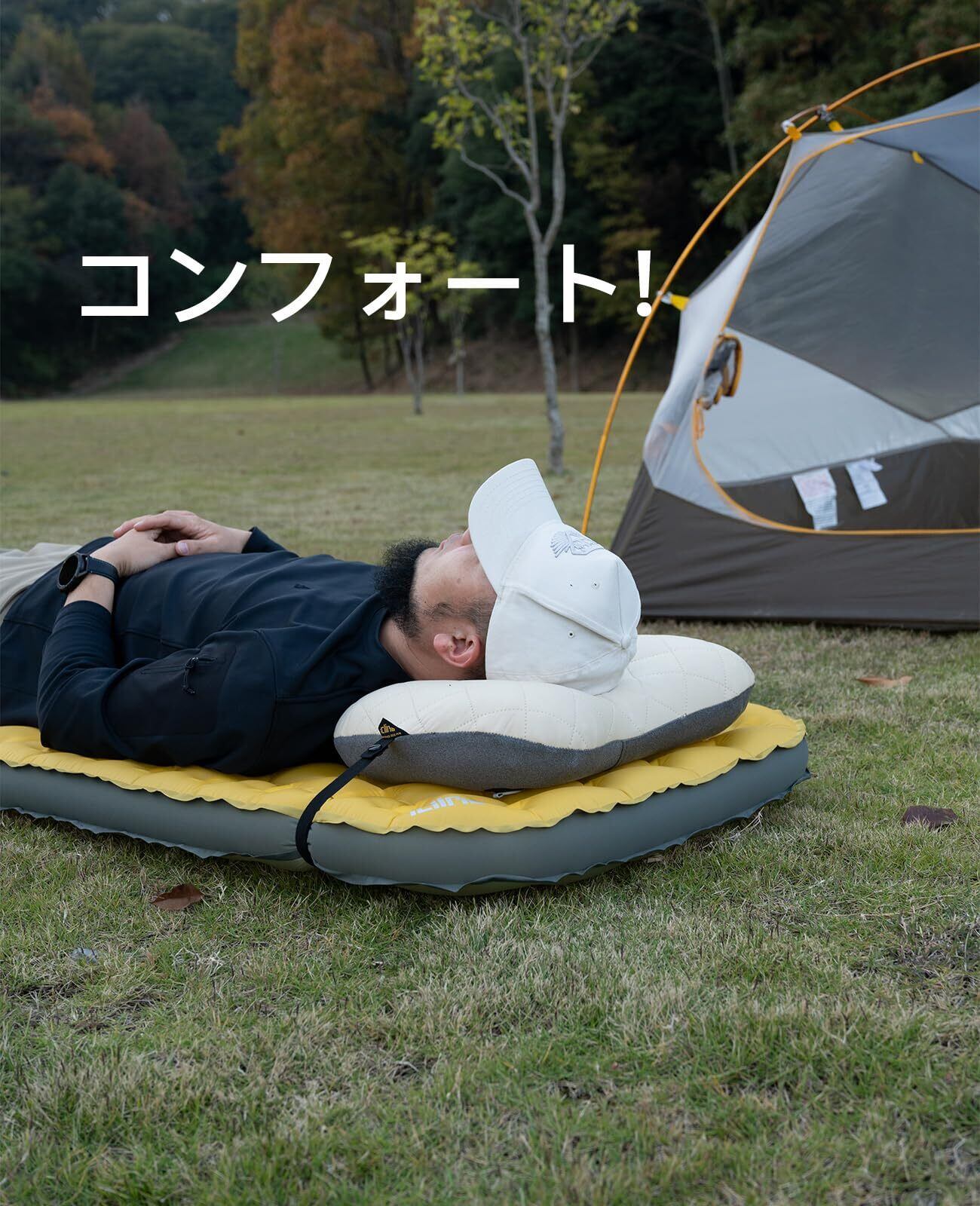■【多用途なデザインで様々なシーンに対応!】このエアピローは、キャンプや車中泊はもちろん、飛行機や旅行、ハイキングなど、あらゆるシーンで活躍します。あなたの移動を快適にサポートします。