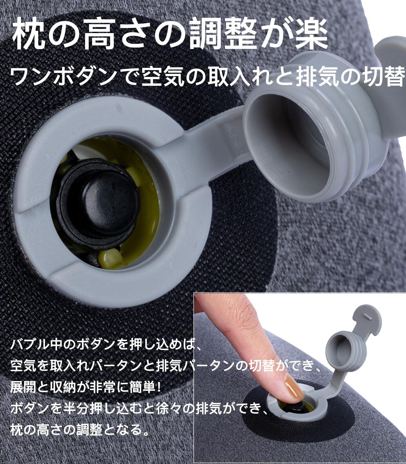 【ワンボダン空気入&排気】バブル中のボダンを押し込めば、空気を取入れパータンと排気パータンの切替ができ、展開と収納が超楽となります。高さ調整可能:バブル中のボダンを半分押し込むと徐々排気バージョンとなり、お好きな高さの調整ができます。