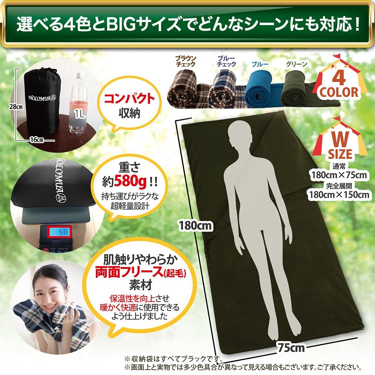 ■【快適な睡眠環境を提供!】HOLOMUAのインナーシュラフは、キャンプのプロによって監修された設計で、アウトドアでの睡眠をより快適にします。オールシーズン使用可能なので、登山や防災などさまざまなシーンで活躍します!
