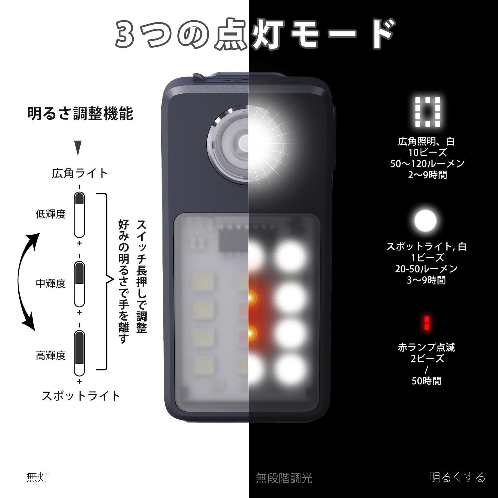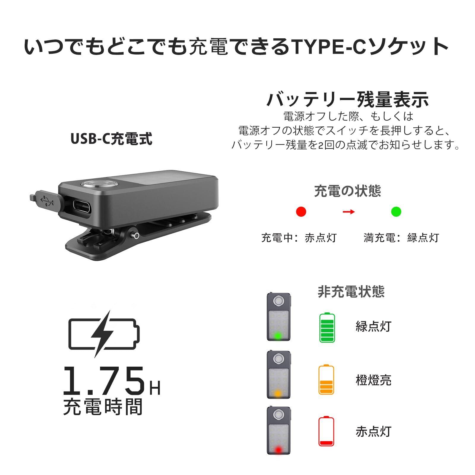 【数量限定】ランニングライトUSB-C充電式、3段階調光、アップグレード版2-in-1クリップライト、土砂降りOK防水コンパクトLED懐中電灯、【広角とスポット2タイプxモード記憶機能x軽量22.9gxIPX7防水】