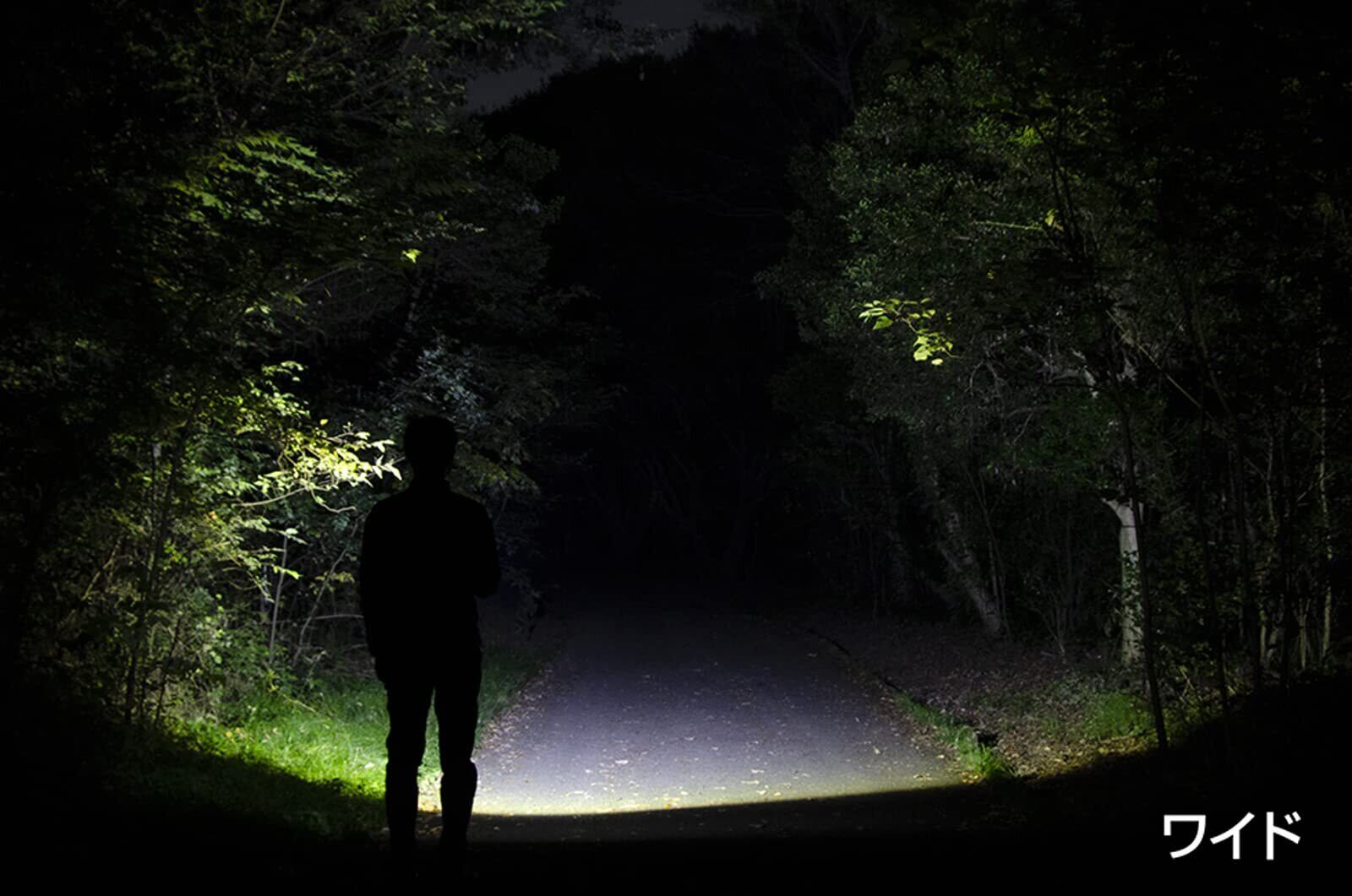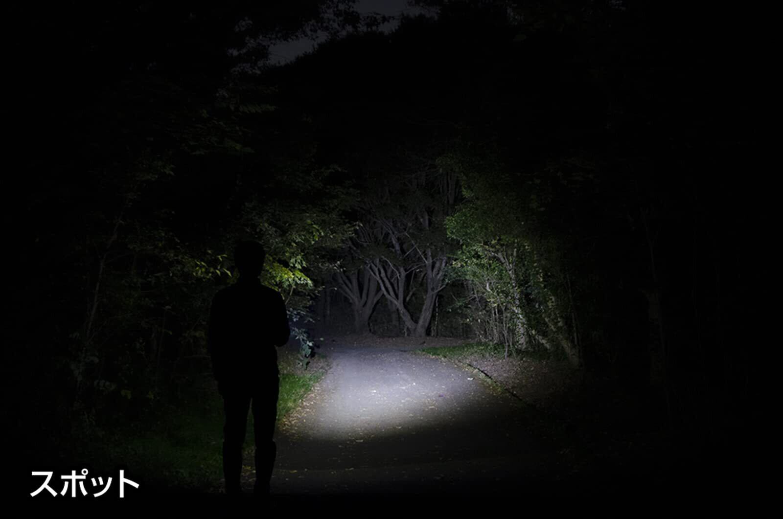 明るさ:Max/480ルーメン・High/330ルーメン・Mid/170ルーメン・Eco/30ルーメン、使用電池:単3形アルカリ電池×2本