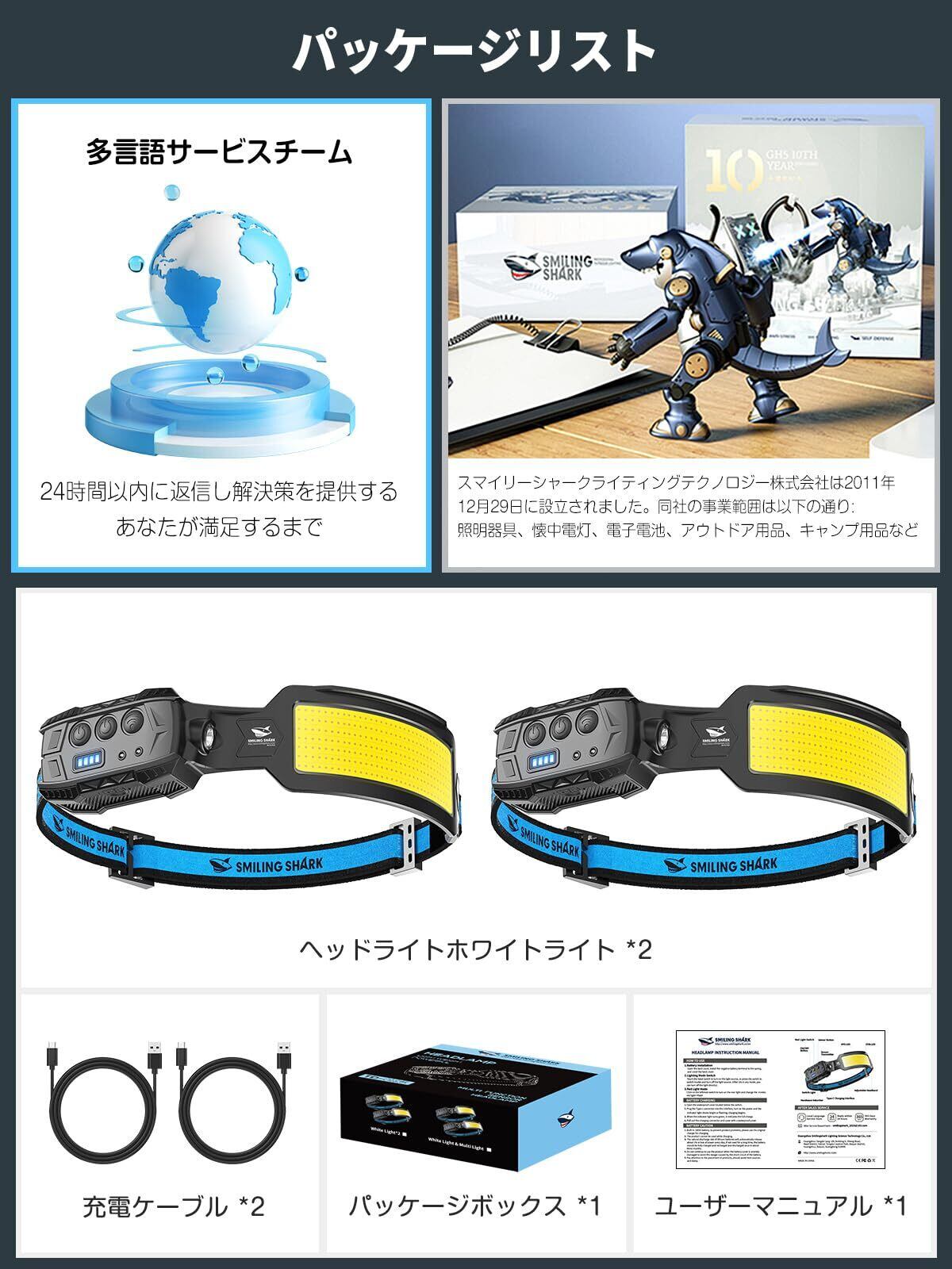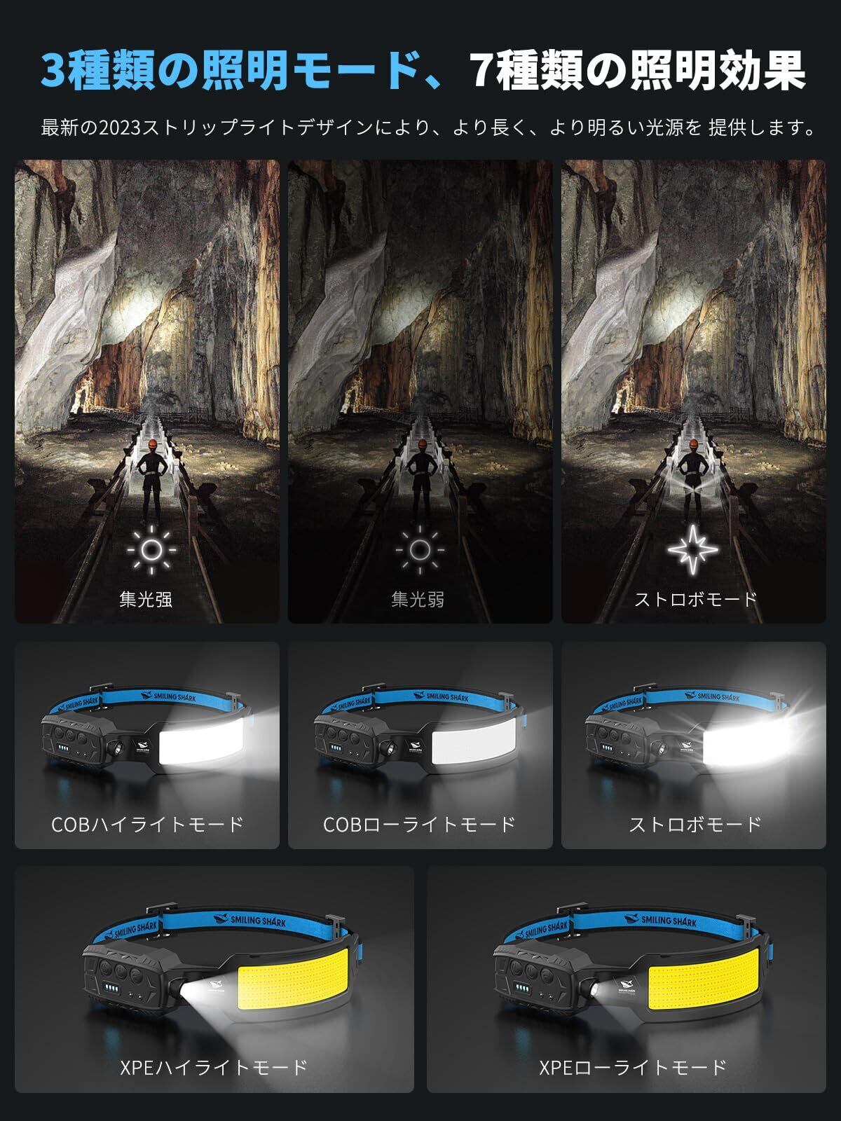 この【人気商品】Smiling Shark ヘッドライトを手に入れて、安心で便利な夜の活動を楽しみましょう!数量には限りがございますので、お早めのご購入をお待ちしております。
