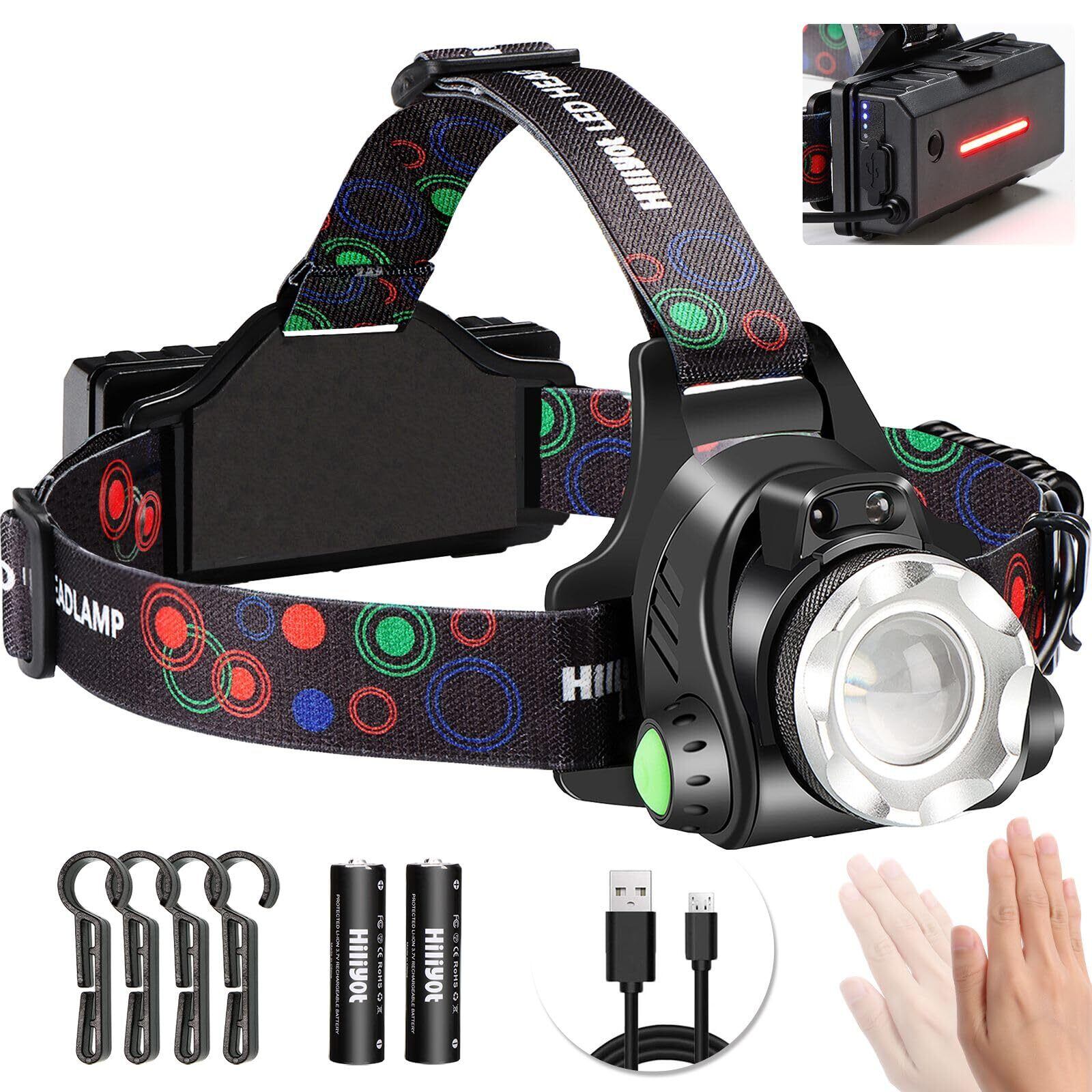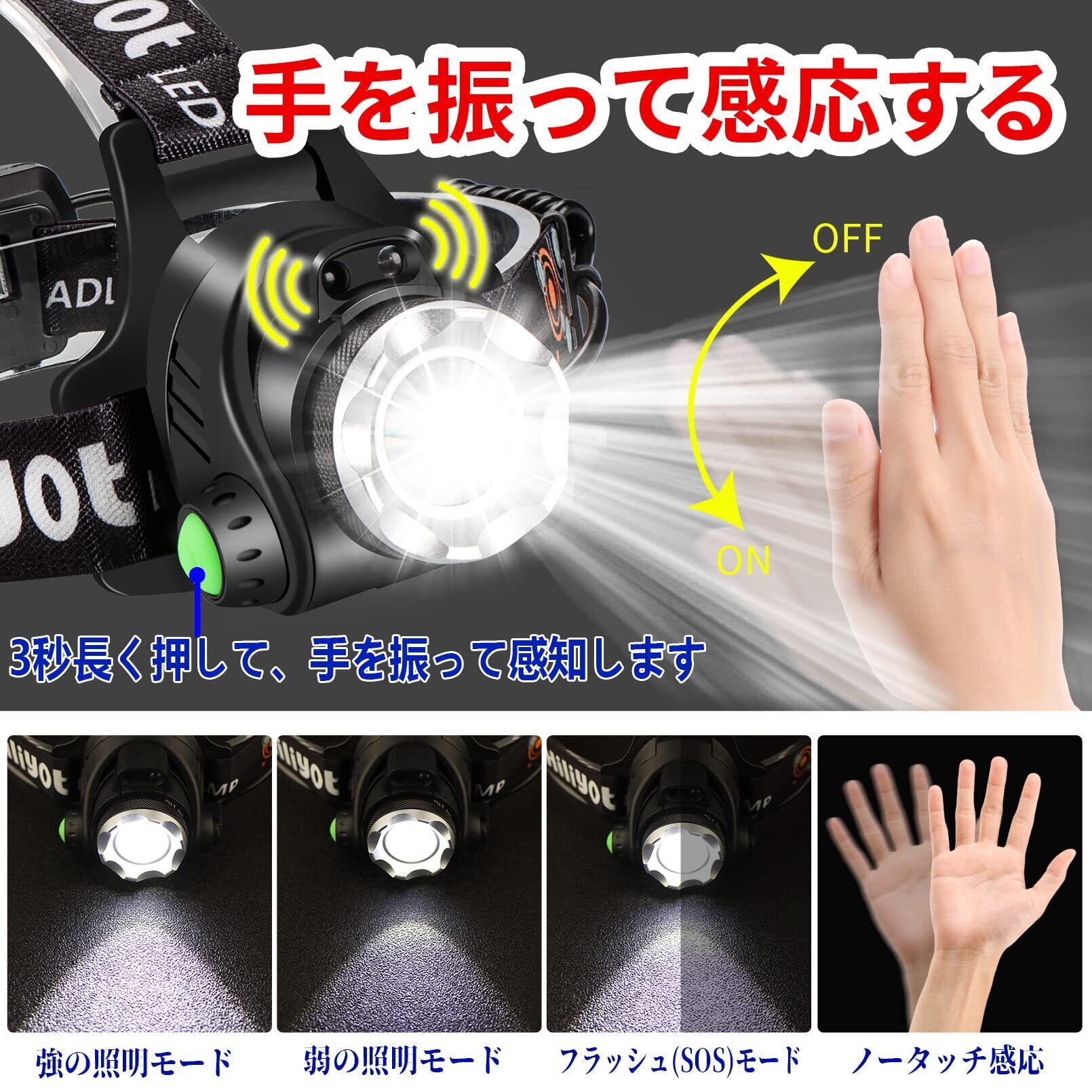 LEDヘッドライト USB充電式 USB-C 超高輝度1000000 長時間型 ヘッドランプ アウトドア用 人感センサー 電池残量指示 防水防塵 90°角度調整可 釣り ライト ヘルメットライト 登山 キャンプ 散歩 作業用 工事 キャンプ 災害 停電用 リチウムイオン蓄電池 2本付