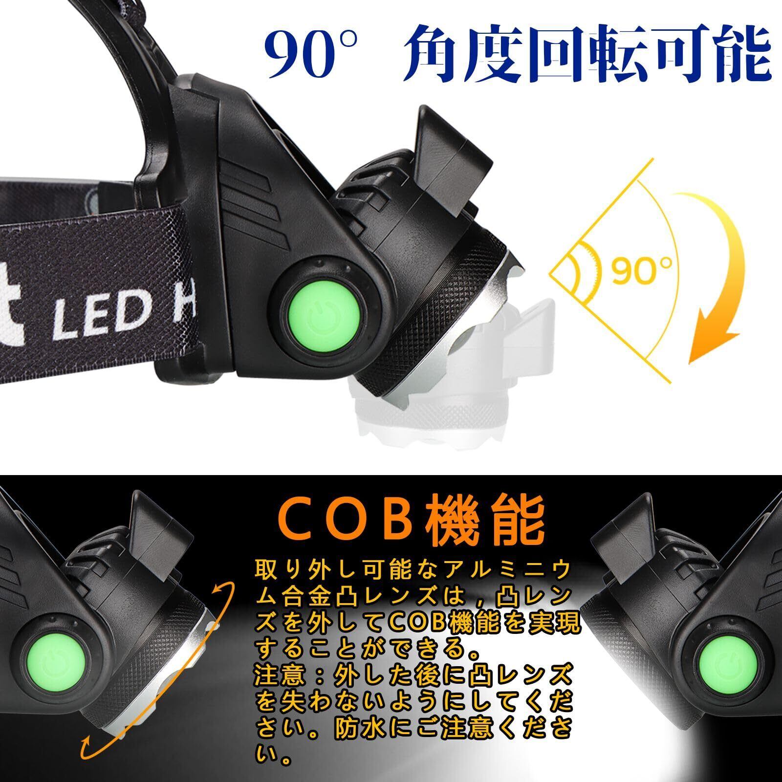 ■【90°角度調整で自由自在!】ヘッドライトは90°の角度調整が可能。作業やアウトドアシーンでの操作が容易で、必要な方向に光を当てることができます。