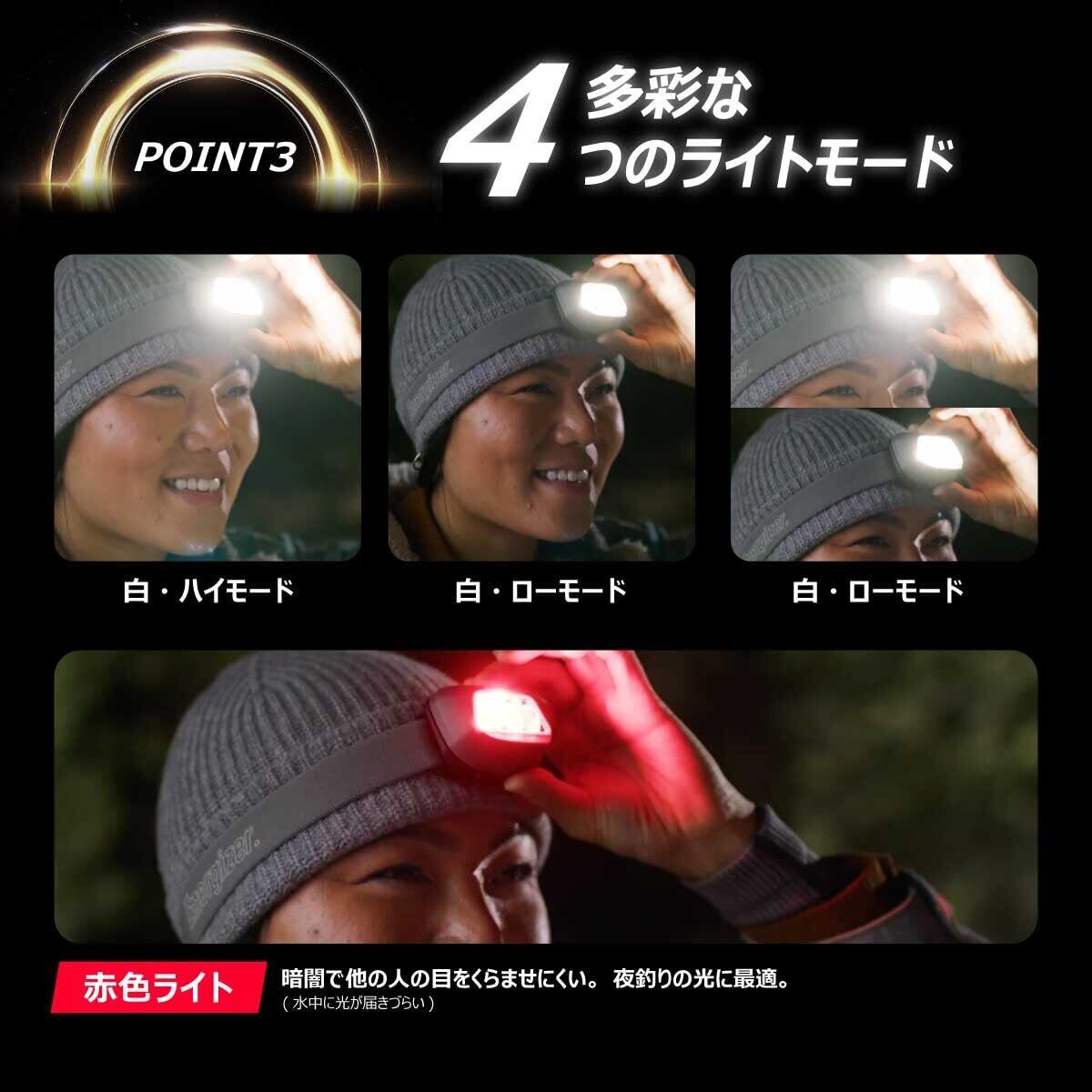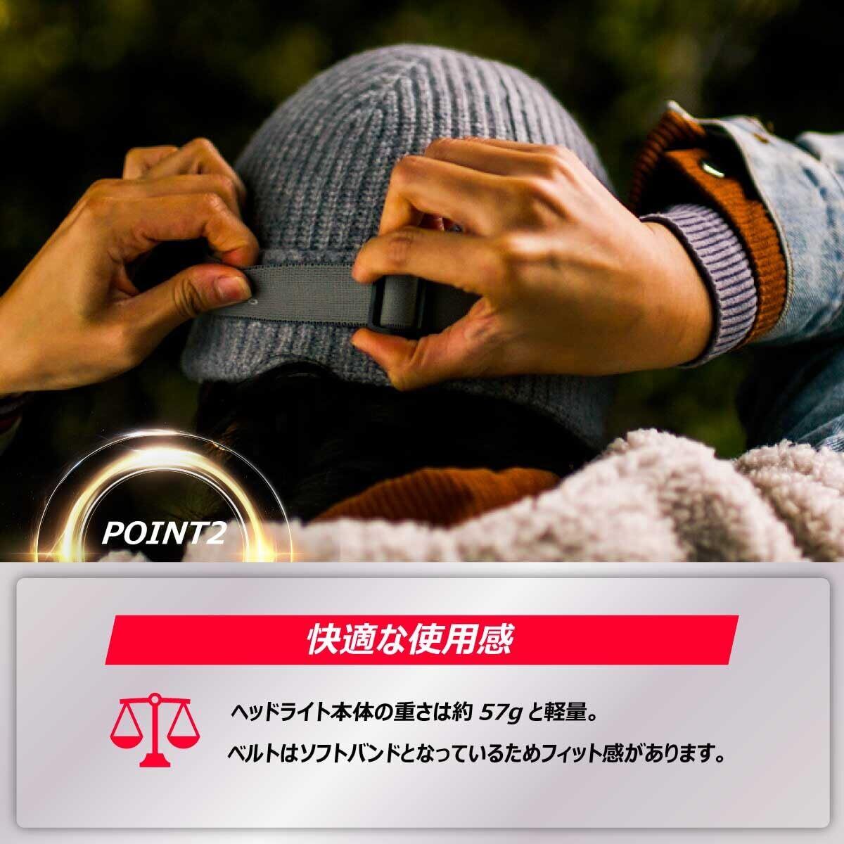 【使用感】:ヘッドライト本体の重さは約57gと軽量。ベルトはソフトバンドとなっているためフィット感があります。 登山、釣り(赤色ライトは夜釣り)、キャンプ、アウトドア、ハイキングや整備などの作業でも活躍します。