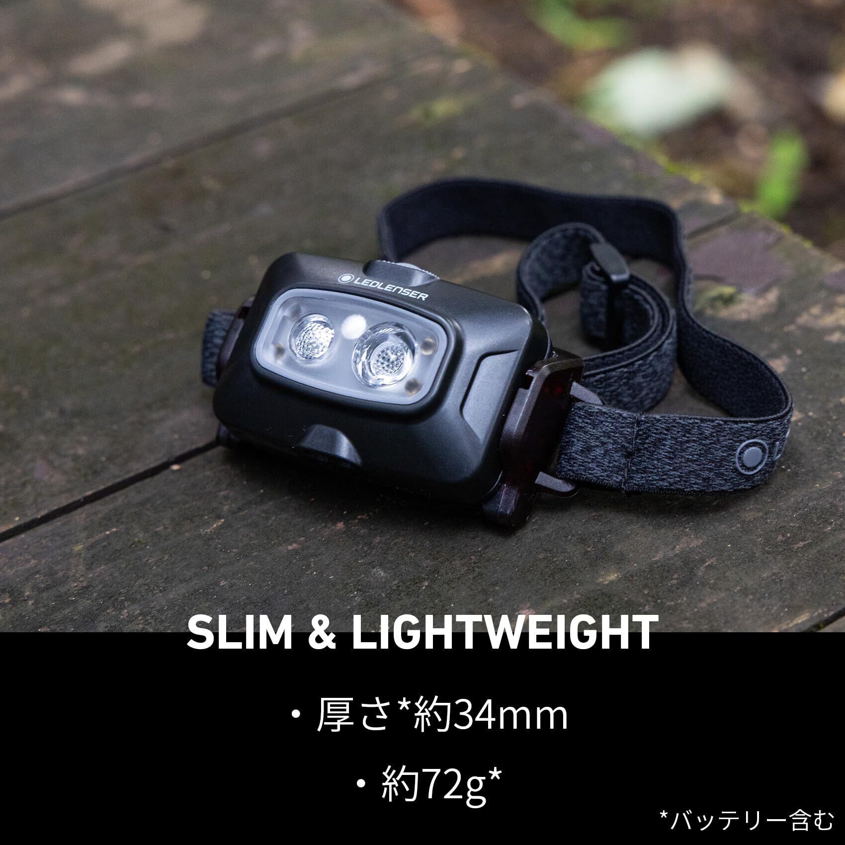 Ledlenser(レッドレンザー) led ヘッドライト 充電式 HF4R Core Black 最大500lm 明るい IP68 防水 小型 72g 軽量 赤色サブライト 釣り 登山 キャンプ アウトドア 作業用 502790