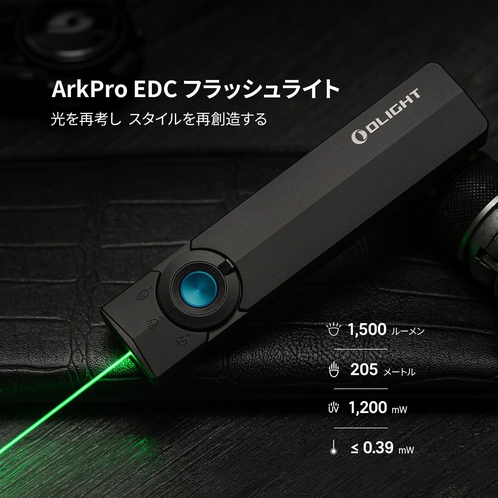 OLIGHT(オーライト) ArkPro ledライト EDC フラットフラッシュライト スポット/広角/UV/緑の光束 4光源 1500ルーメン Type-C&MCC充電式 懐中電灯 強力 防災/停電対策/登山/キャンプ/屋外/作業用(マットブラック)