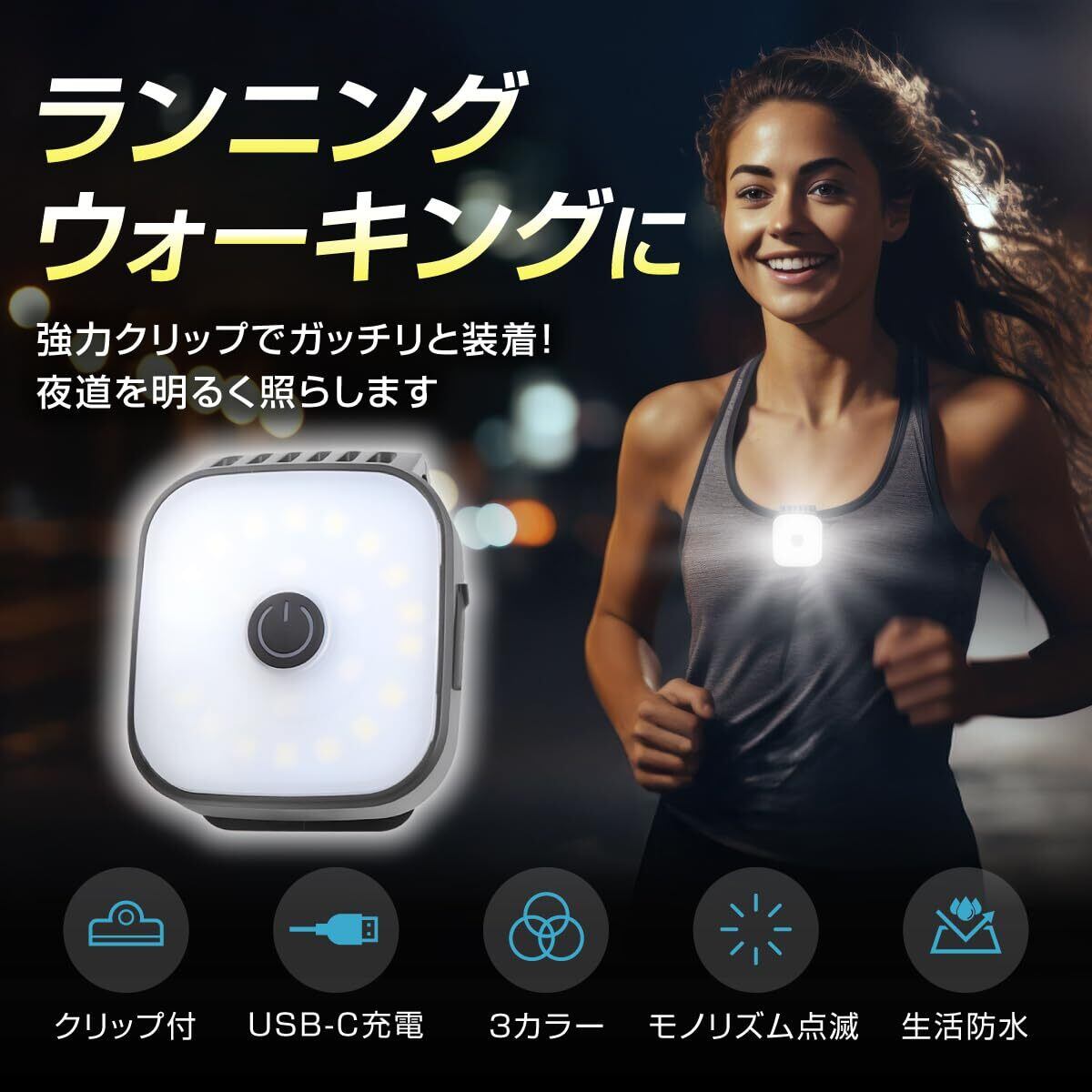 充電式 ランニング ウォーキング 超軽量 ライト クリップ IPX4防水 TYPE-C ウォーキング ジョギング 散歩 夜間 夜道