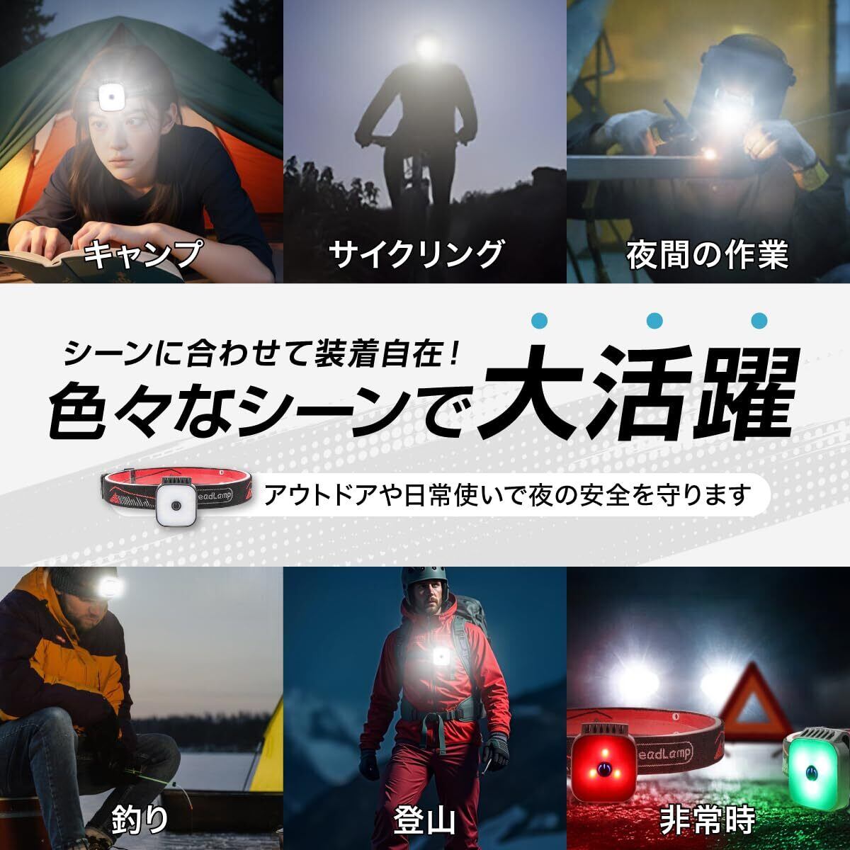 ■【IPX4防水設計で安心!】突然の雨や汗も気にせず使用できるIPX4等級の防水性能を持っています。アウトドアや夜のアクティビティに最適で、悪天候でも安心して使用できます。