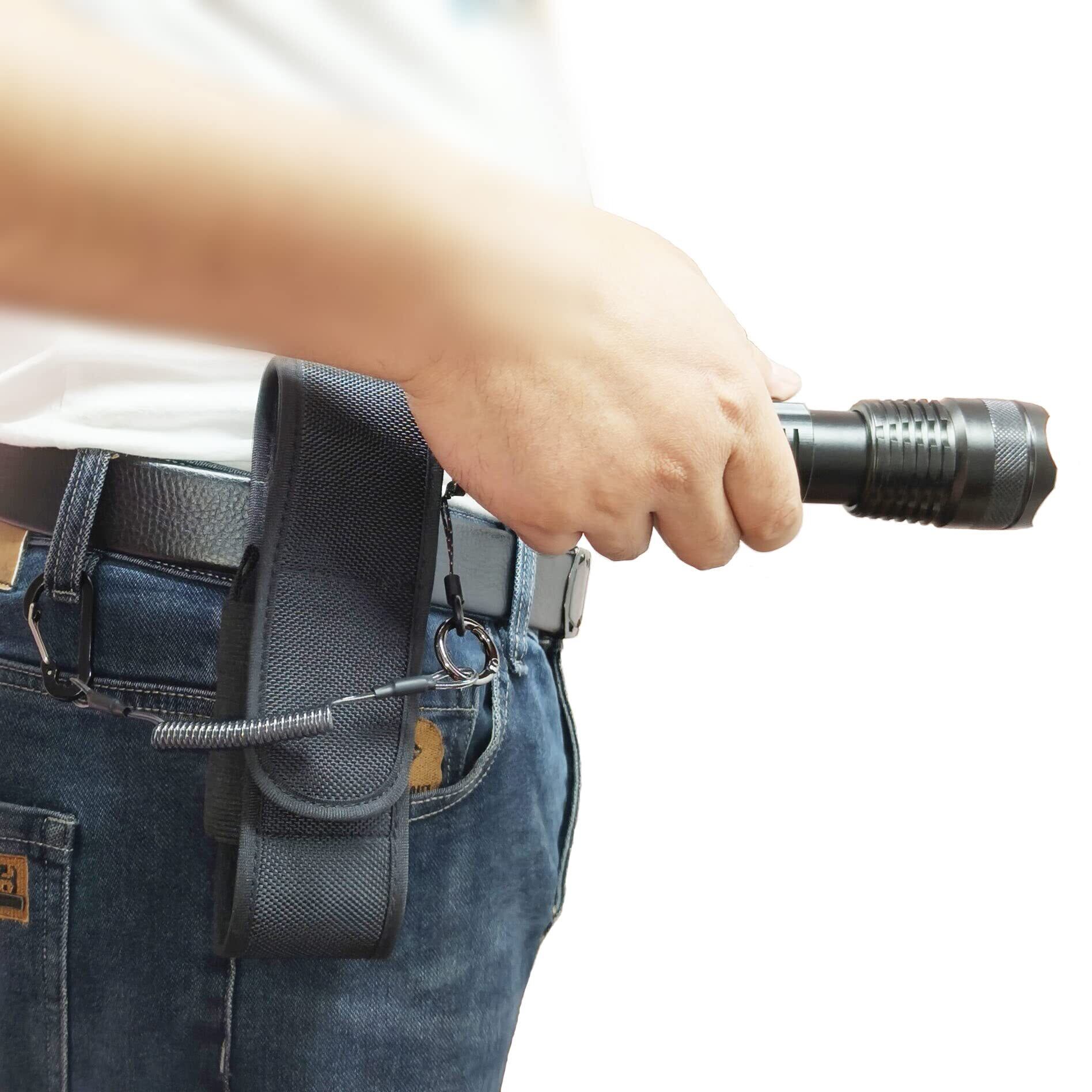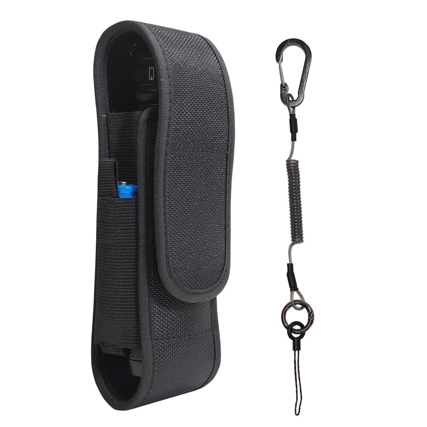 フラッシュライト用ポーチ 懐中電灯ケース 懐中電灯ホルスター 電池収納ポケット カールコード付き ブラック