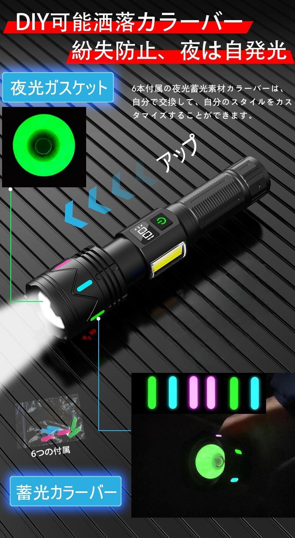 【数量限定】LED 懐中電灯【超高輝度5000000ルーメン・超遠距離照射】充電式 軍用 最強 ハンディライト マグネット付き ディジタル電気量 明るい 超強力 フラッシュライト 11モード ズーム調整 Type-C 電池式 ハンドライト 軽量 小型 ペンライト 防水 防災 手持ち 多機能COB作業灯 新型 携帯 登山 夜釣り用 キャンプ アウトドア 地震 停電対策
