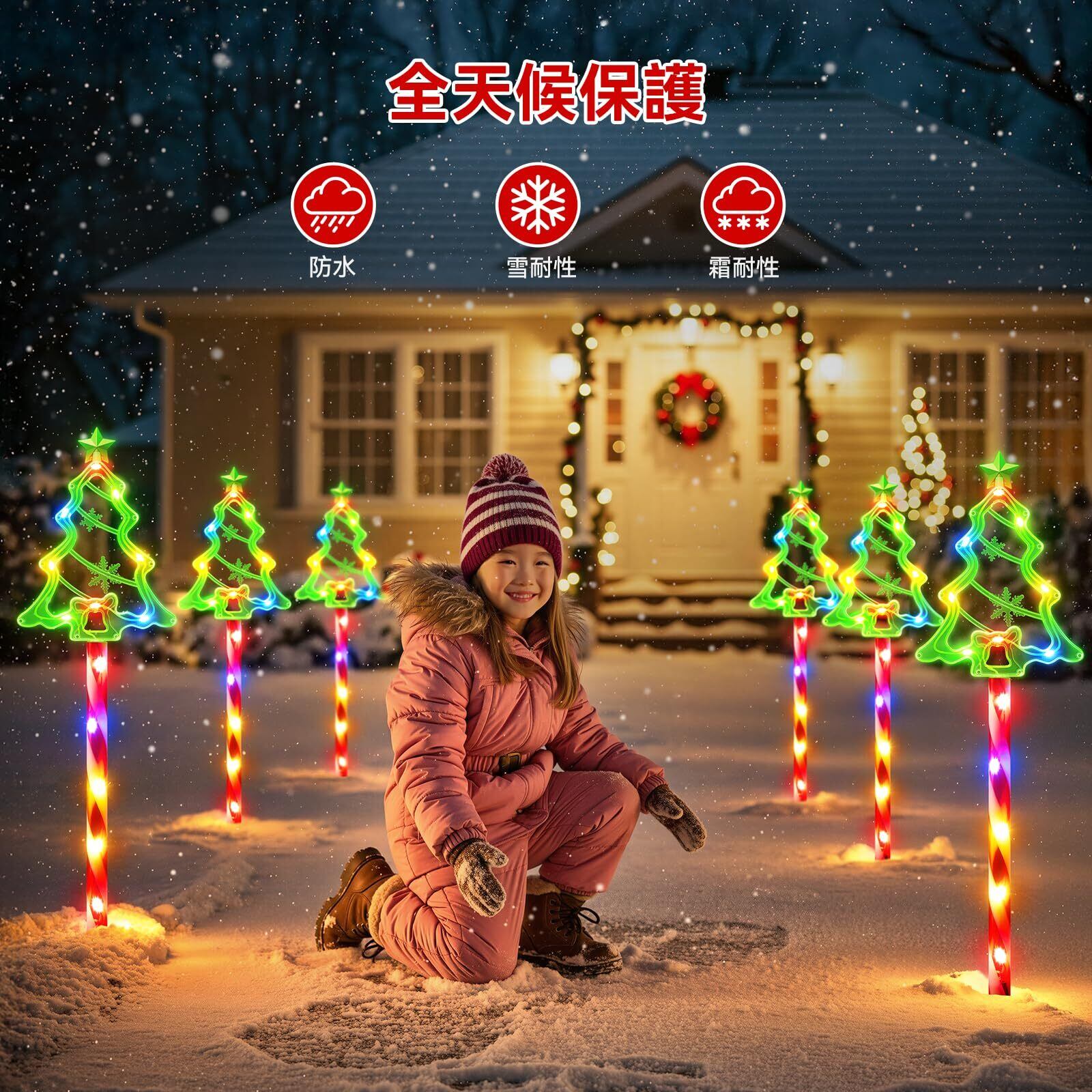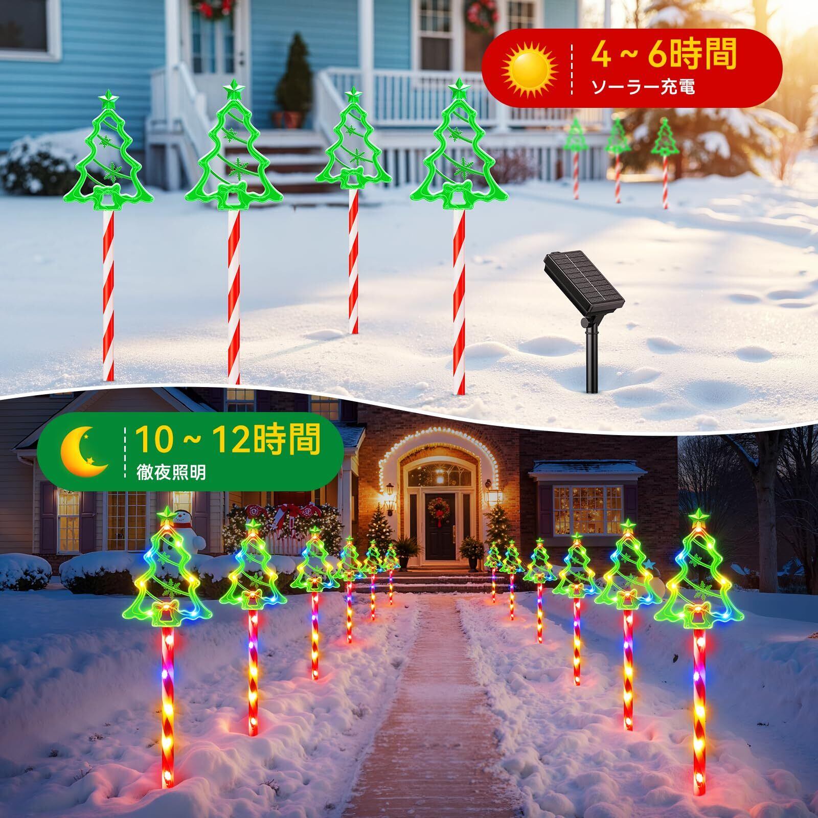 【クリスマス飾りライト&自動点灯&消灯】本クリスマス ライトはキャンディキャンドル型のスタンドが特徴的な、本格的なクリスマス雰囲気を演出します。各ツリーに12個の高品質LEDランプ(合計72個)を搭載し、眩しくない柔らかな光を放ちます。このクリスマス 飾りが10種類の照明モードから選べて1日中楽しめます。電源OFF時の状態を記憶する機能で、毎回の設定が不要です。ガーデンやリビーム、庭、歩道、ベランダ、玄関等の飾りに最適な、感動的なライトアートです。