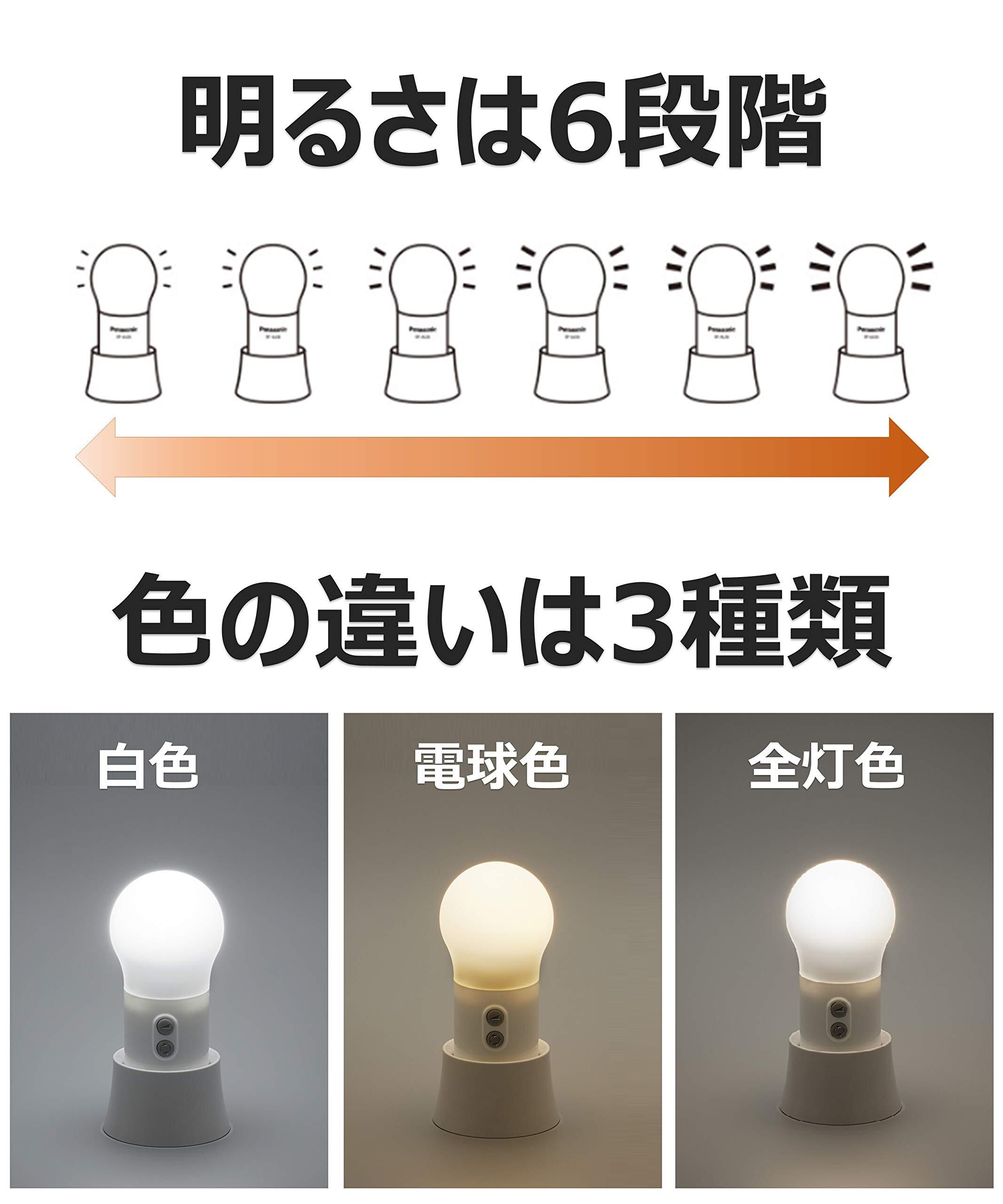 調光(6段階)・調色(3色)機能で使用シーンに合わせて明かりを調整可能!